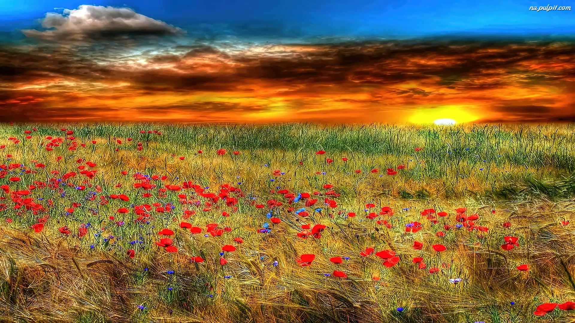 Maki, Słońca, Zachód, Łąka Na Pulpit