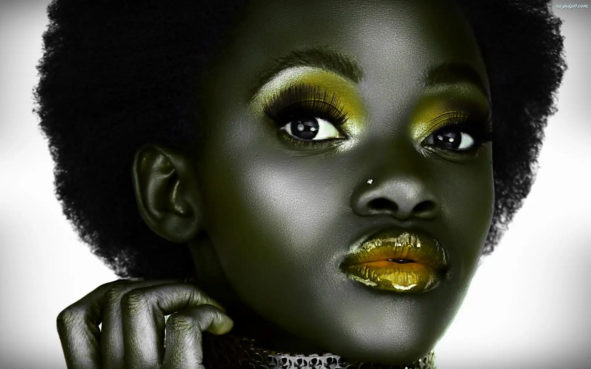 Makijaż, Modelka, Czarnoskóra, Złoty Na Pulpit