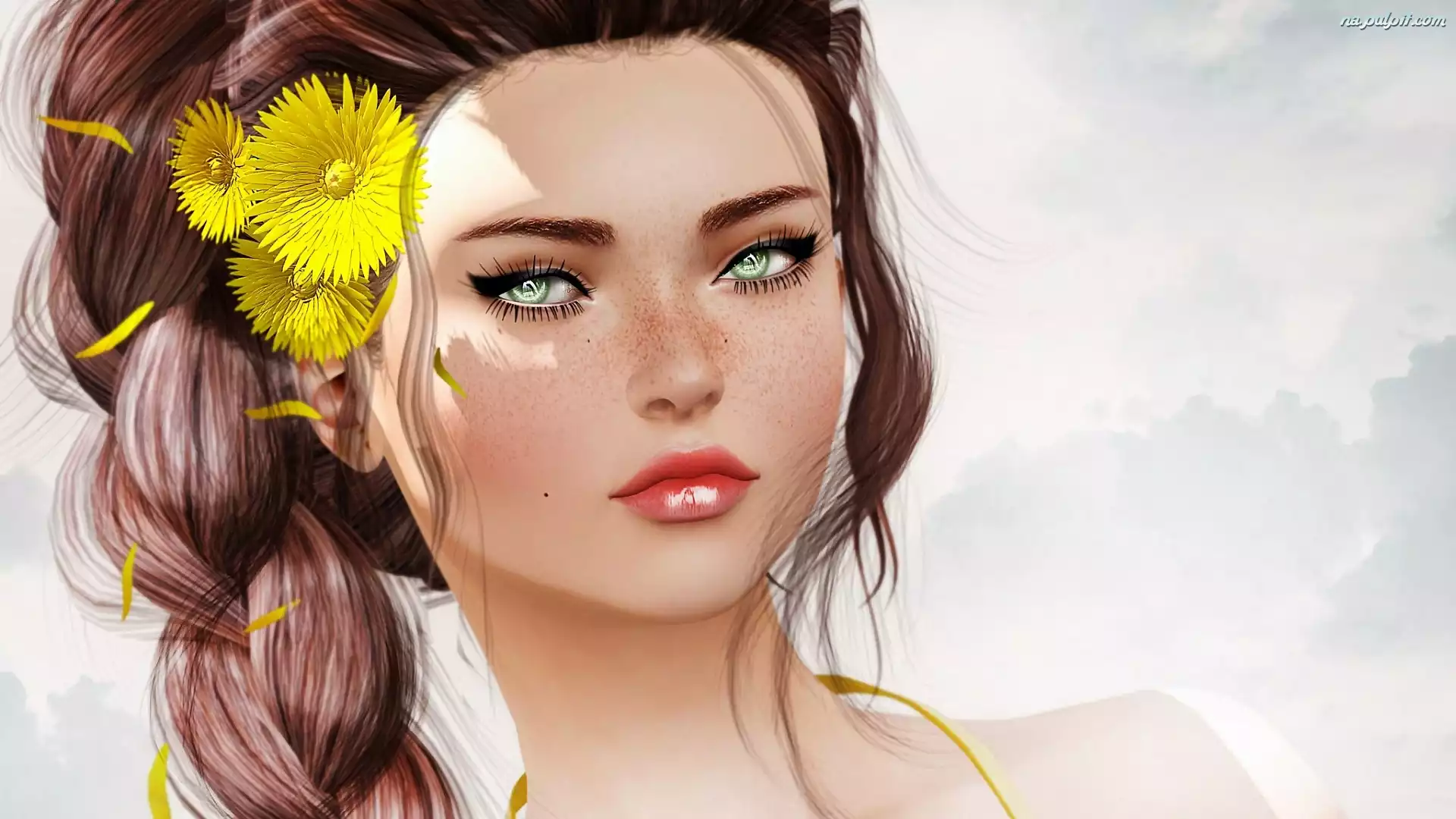 Makijaż, Kobieta, Twarz, Grafika, Warkocz