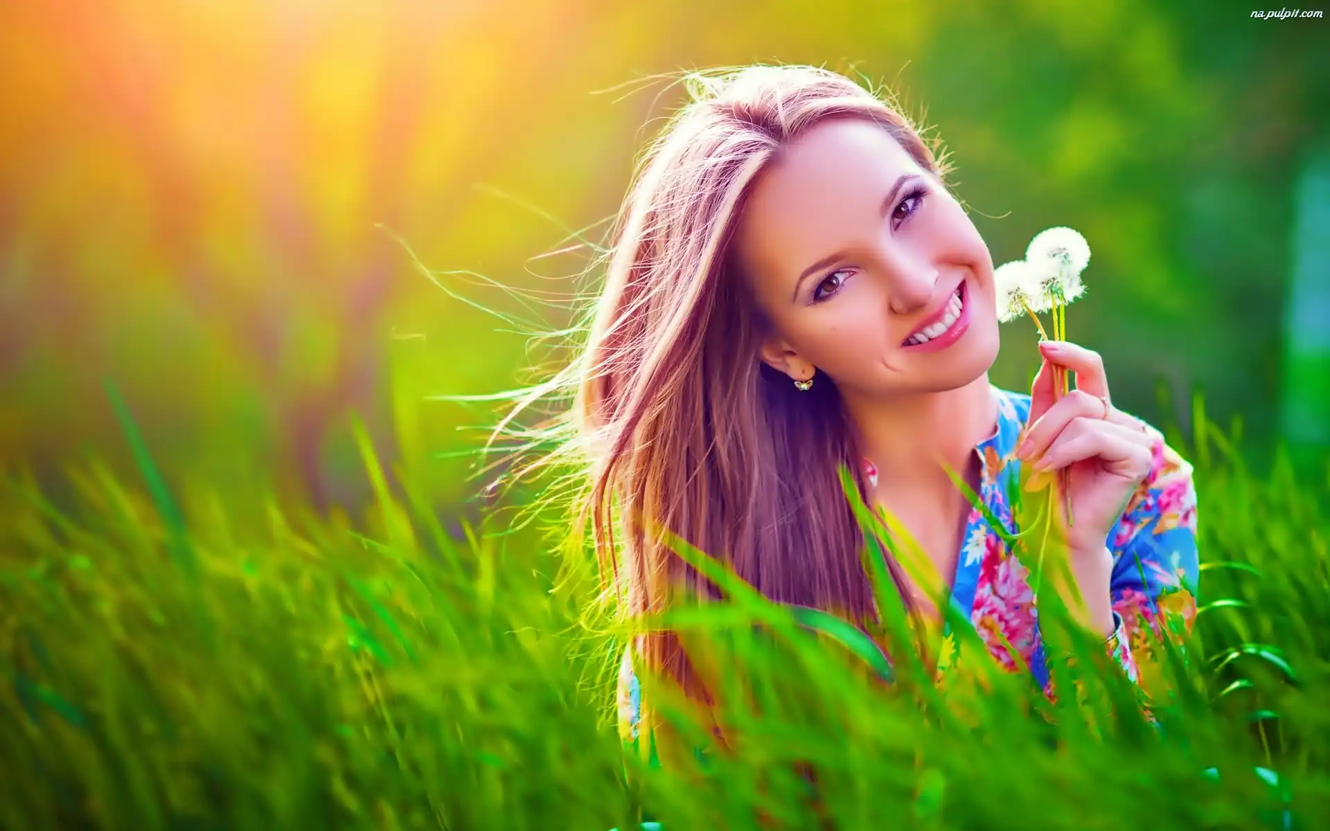 Makijaż, Trawa, Mniszek, Biżuteria, Kobieta, Łąka Na Pulpit