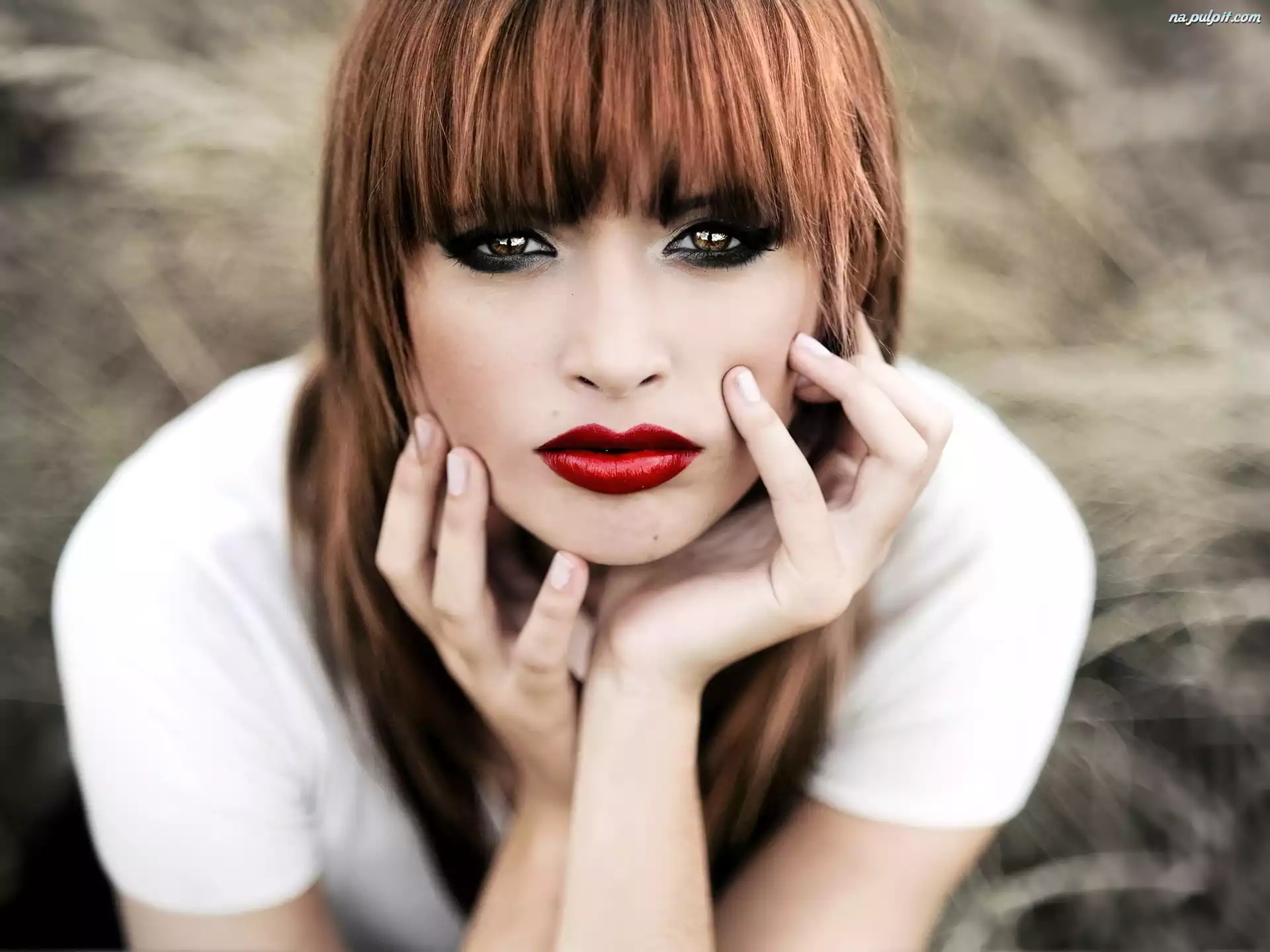 Makijaż, Włosy, Rude, Kobieta, Twarz