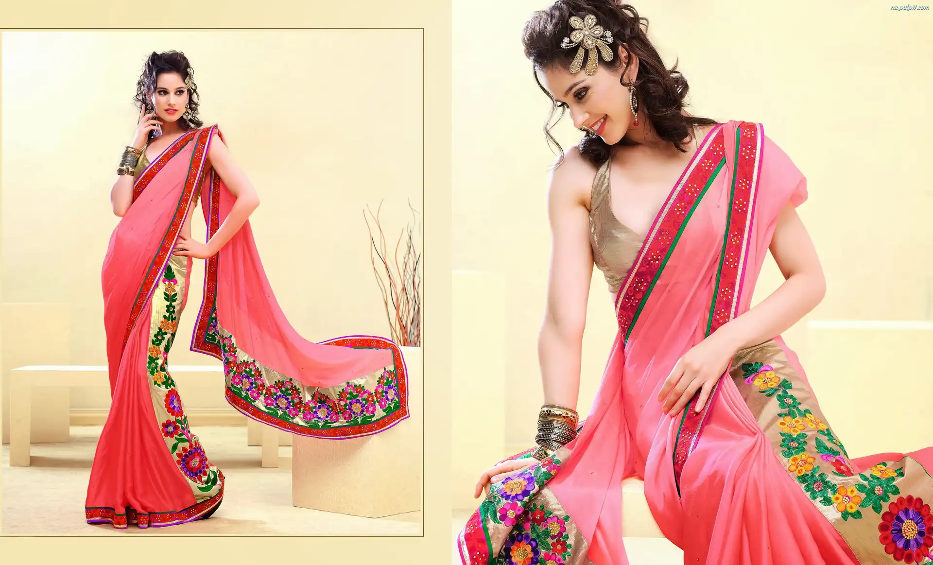 Makijaż, Sari, Strój, Kobieta, Biżuteria Na Pulpit