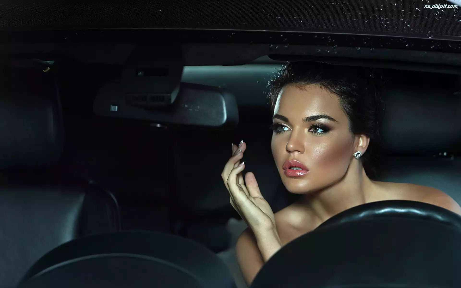 Makijaż, Brunetka, Piękna, Samochód Na Pulpit