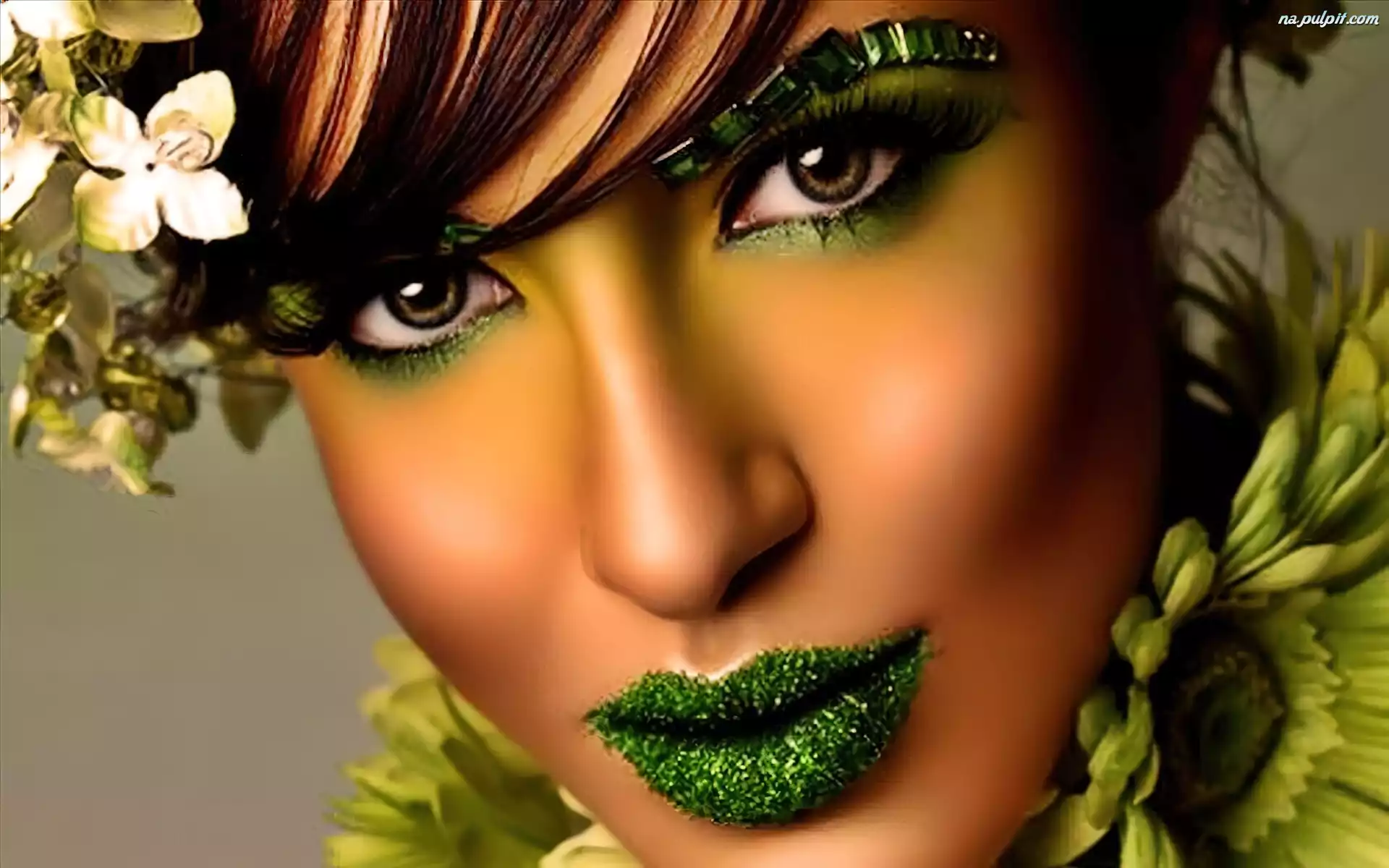Makijaż, Kobiety, Twarz, Zielony Na Pulpit