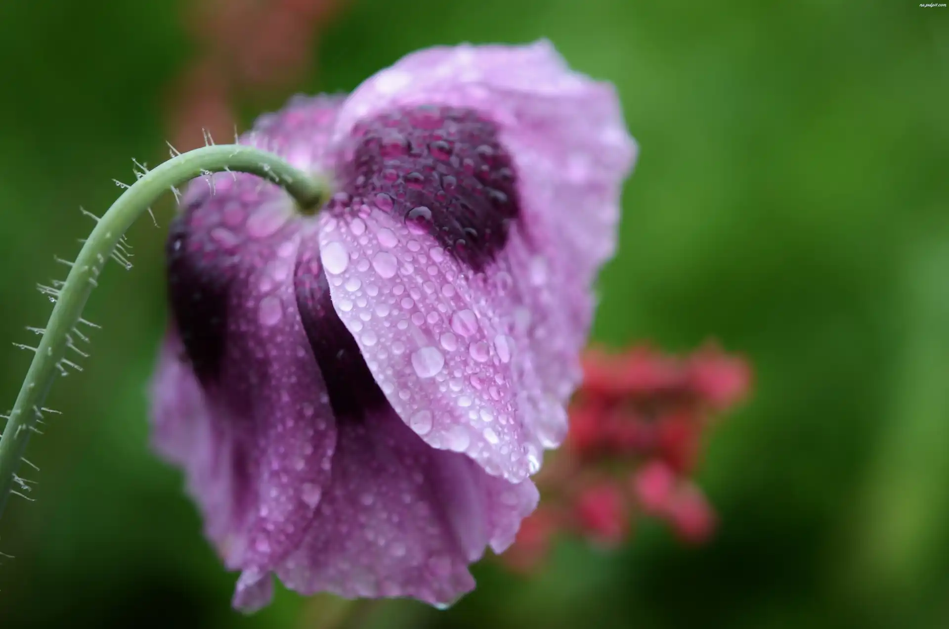 Makro, Mak, Fioletowy, Krople Na Pulpit