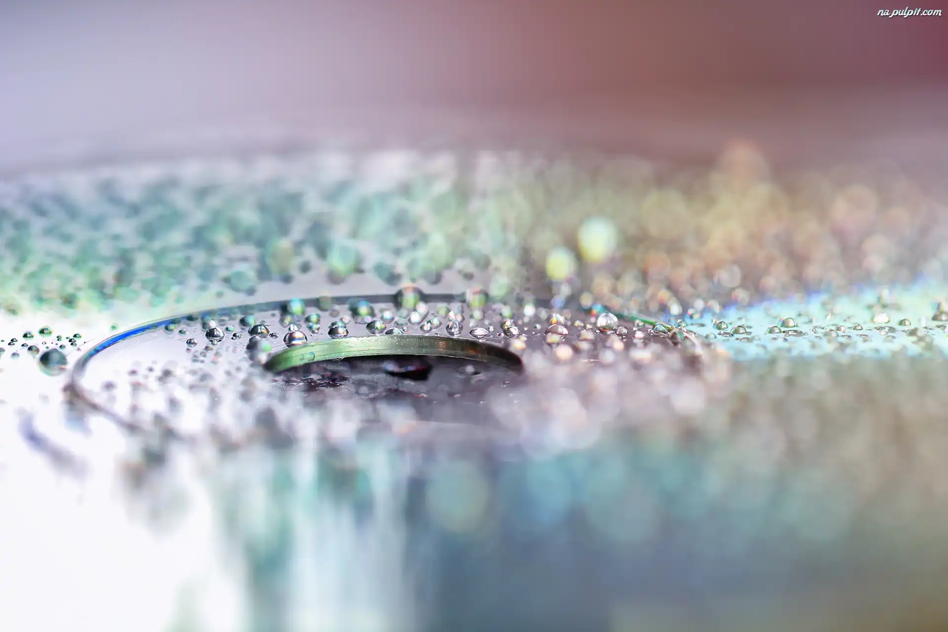 Makro, Krople, Płyta kompaktowa, Bokeh