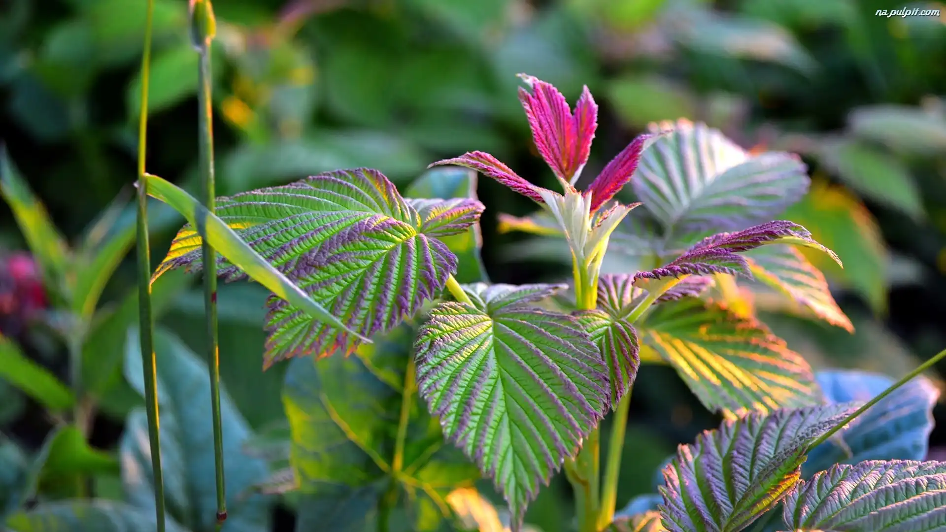 Makro, Przebijające Światło, Maliny, Liście, Lato Na Pulpit
