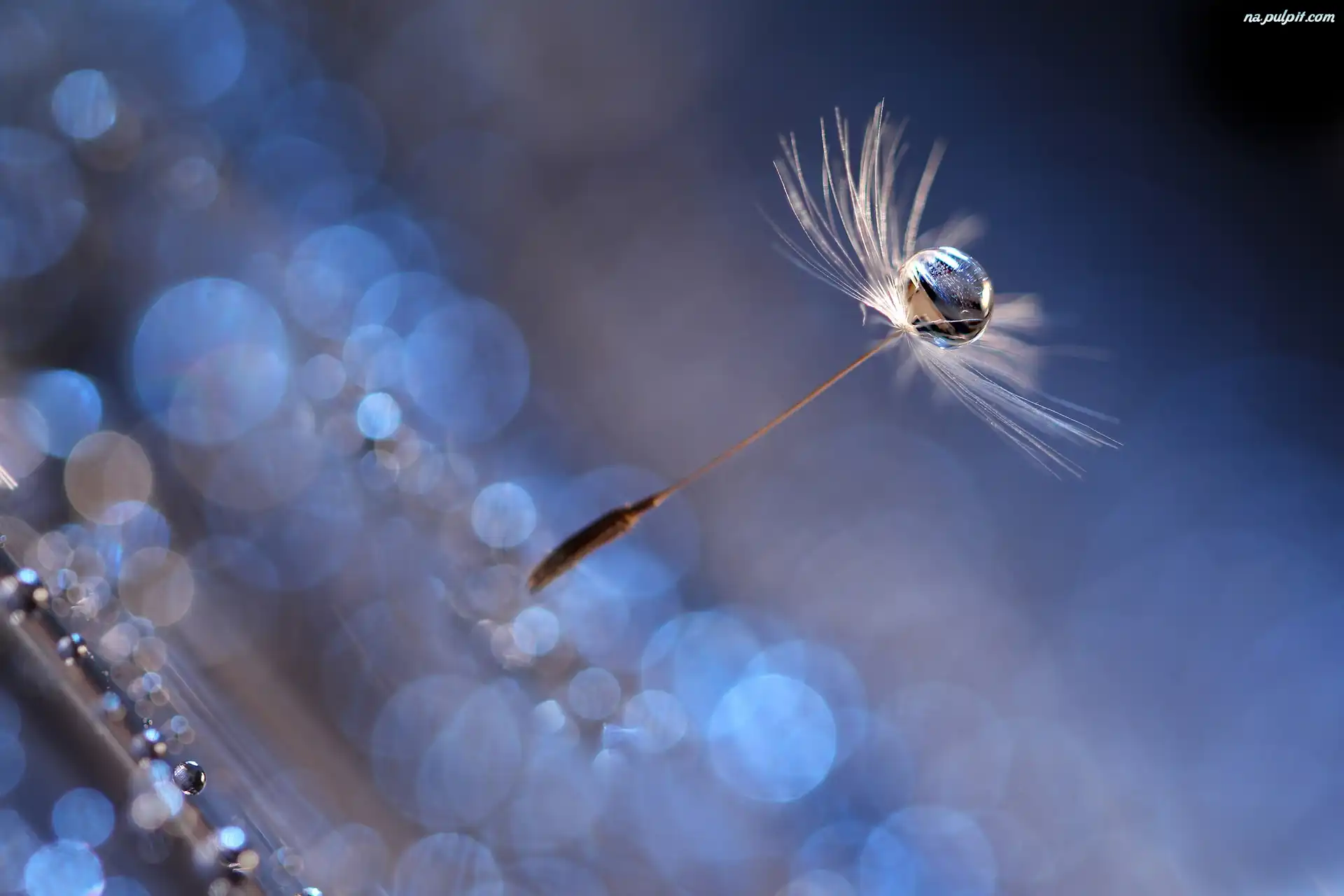 Makro, Rozmyte, Tło, Niełupek, Mniszek, Kropla