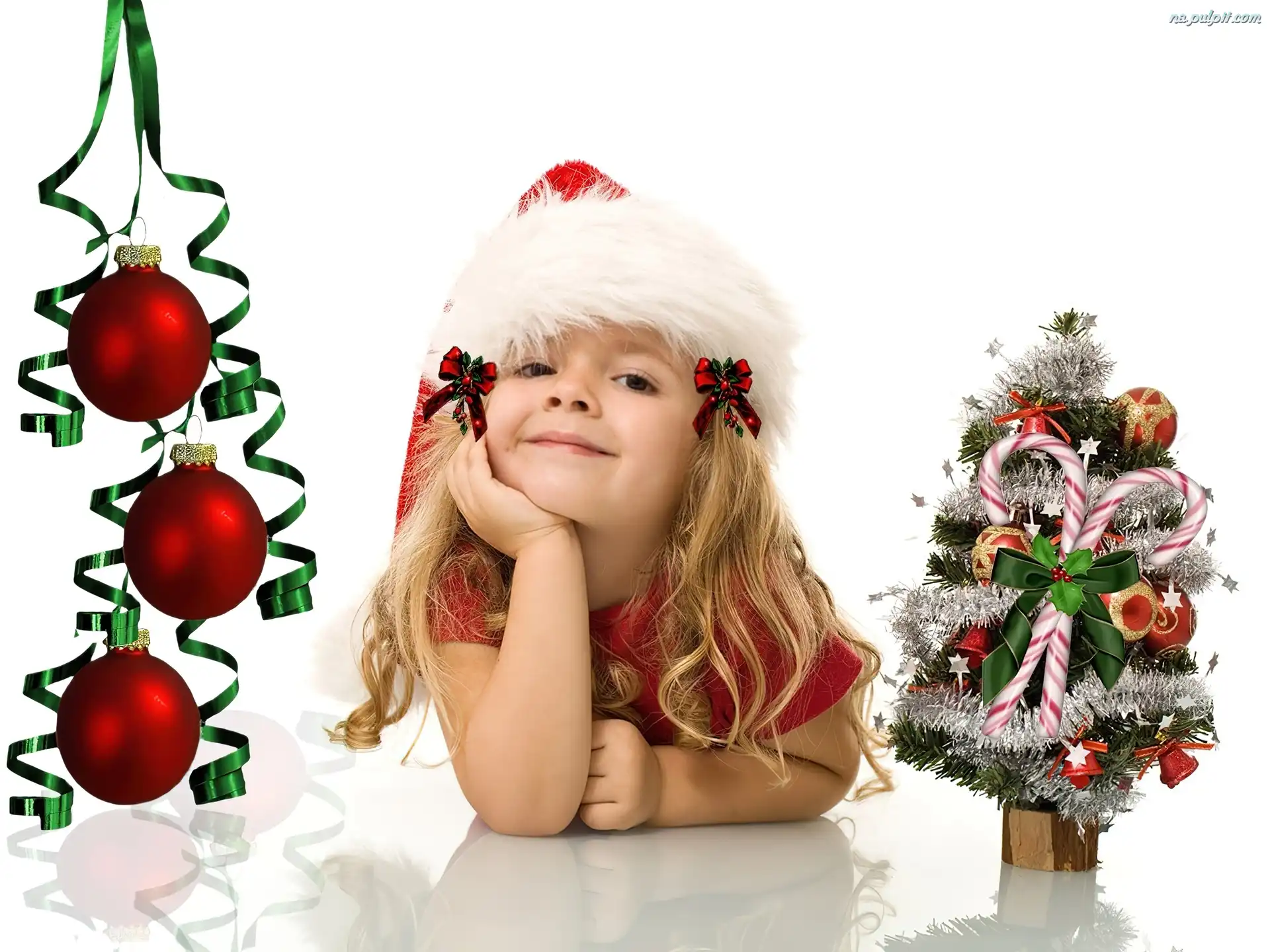 Święta, Bombki, Dziewczynka, Mała, Choinka Na Pulpit