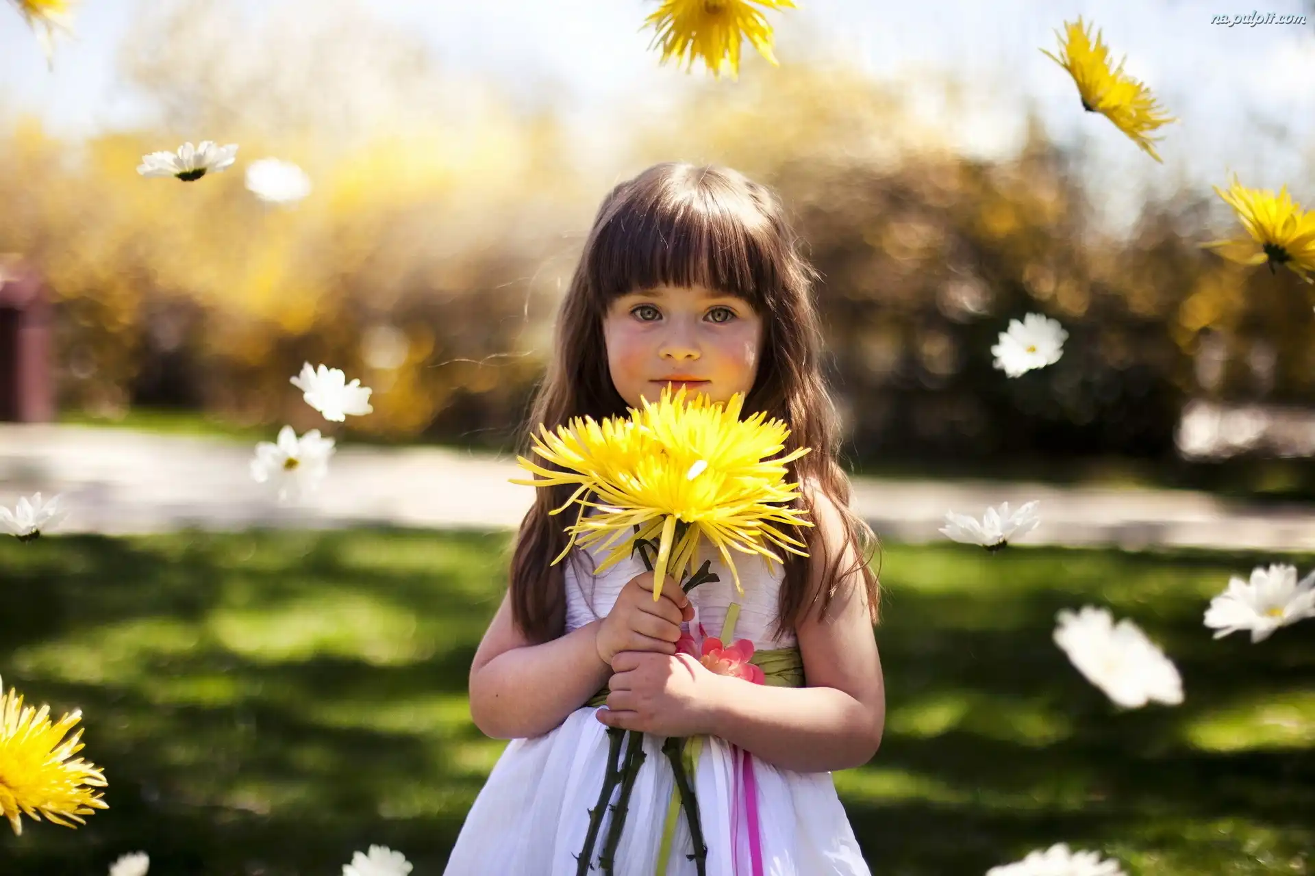 Kwiaty, Mała, Dziewczynka Na Pulpit