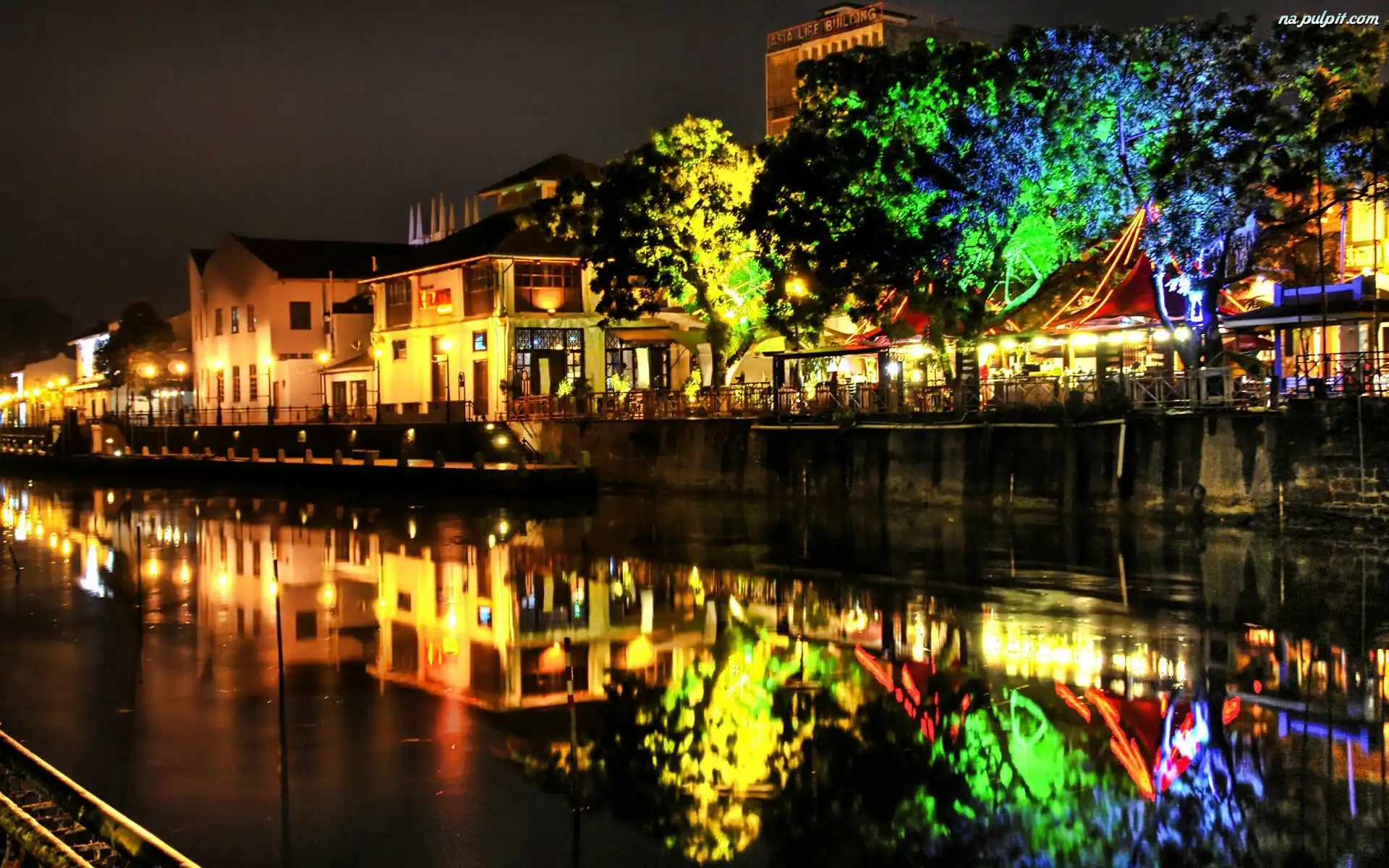 Malakka, Nocą, Odbicie, Panorama, Malezja, Miasta Na Pulpit