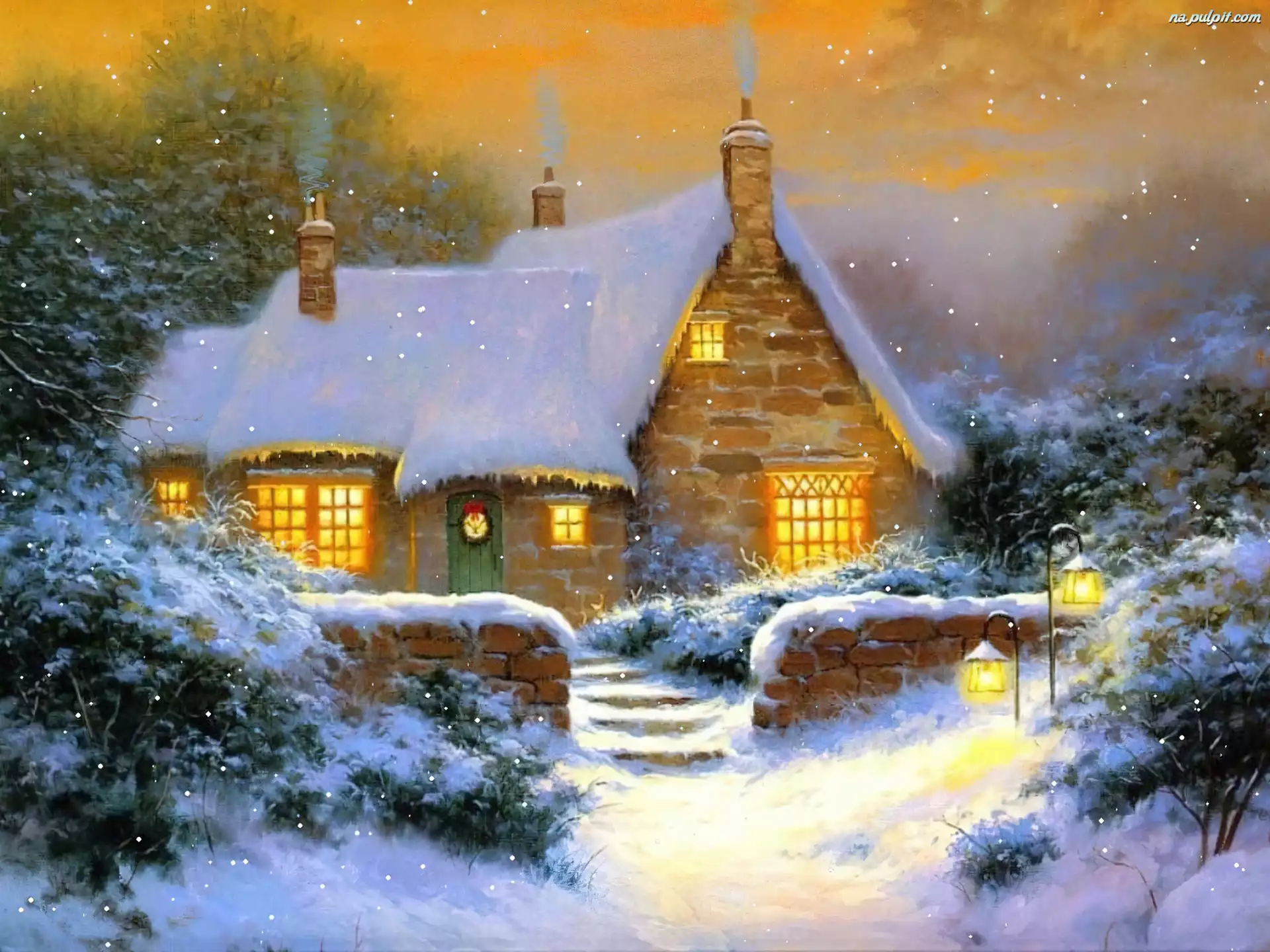 Malarstwo, Zimowy, Dom, Widoczek Na Pulpit