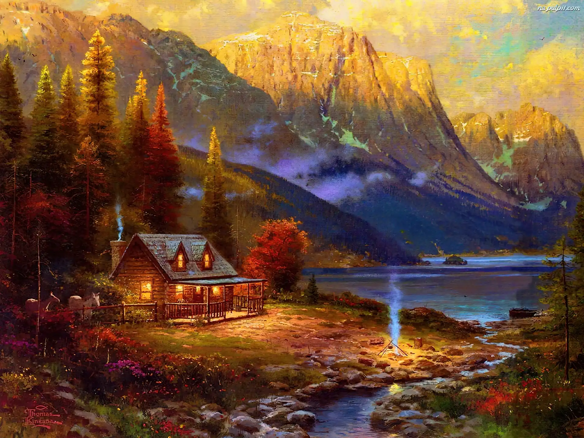 Malarstwo, Góry, Jezioro, Domek, Widoczek Na Pulpit