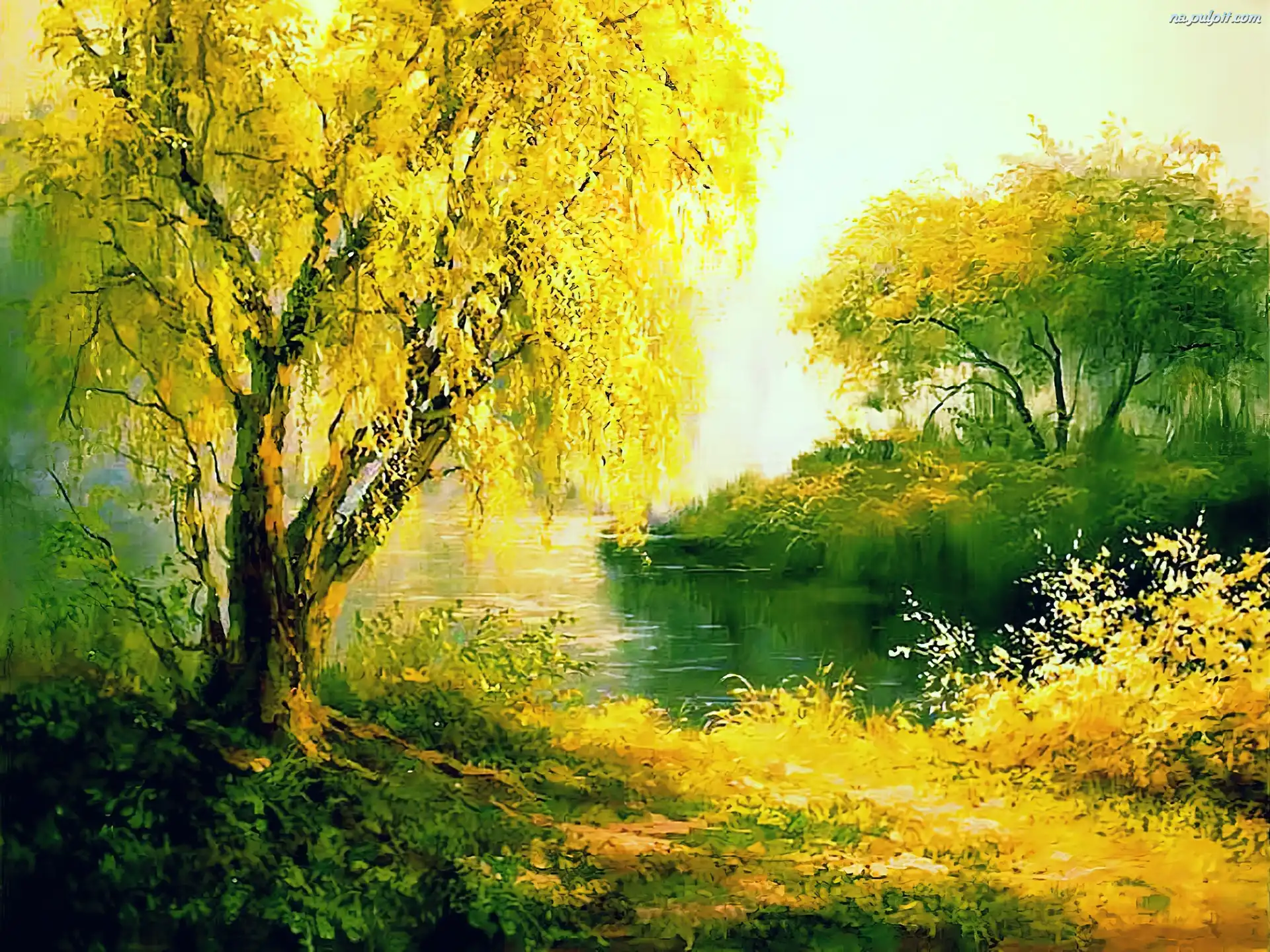 Malarstwo, Jesień, Staw, Drzewa, Widoczek Na Pulpit