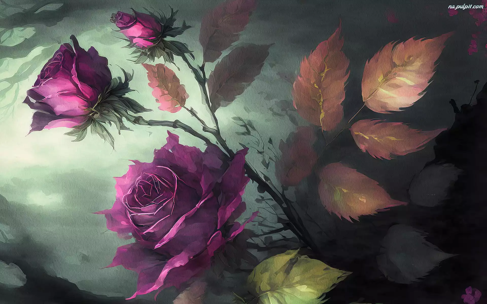 Fioletowe, Malarstwo, Gałązka, Róże, Kwiaty Na Pulpit