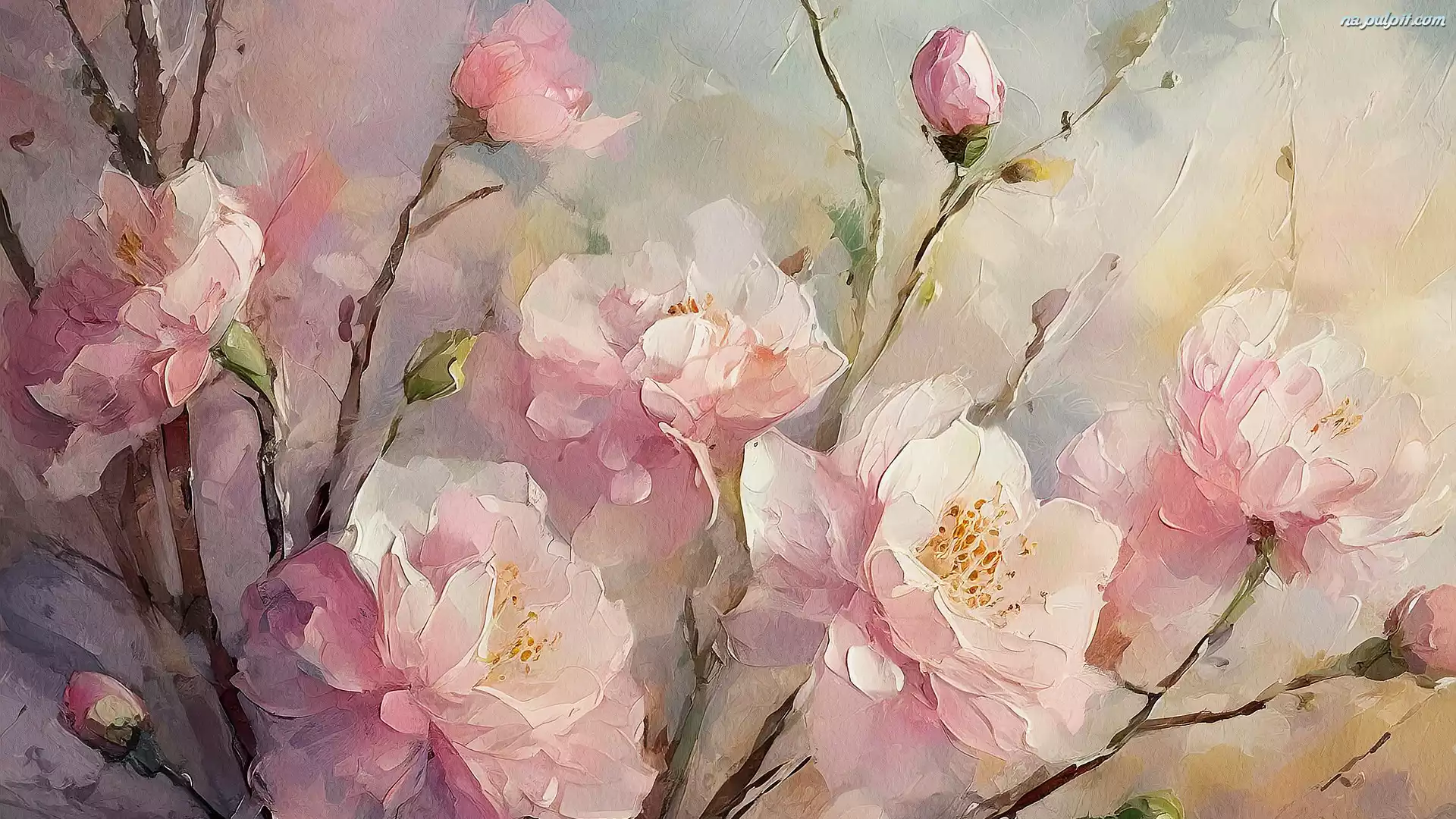 Obraz, Malarstwo, Różowo-białe, Kwiaty