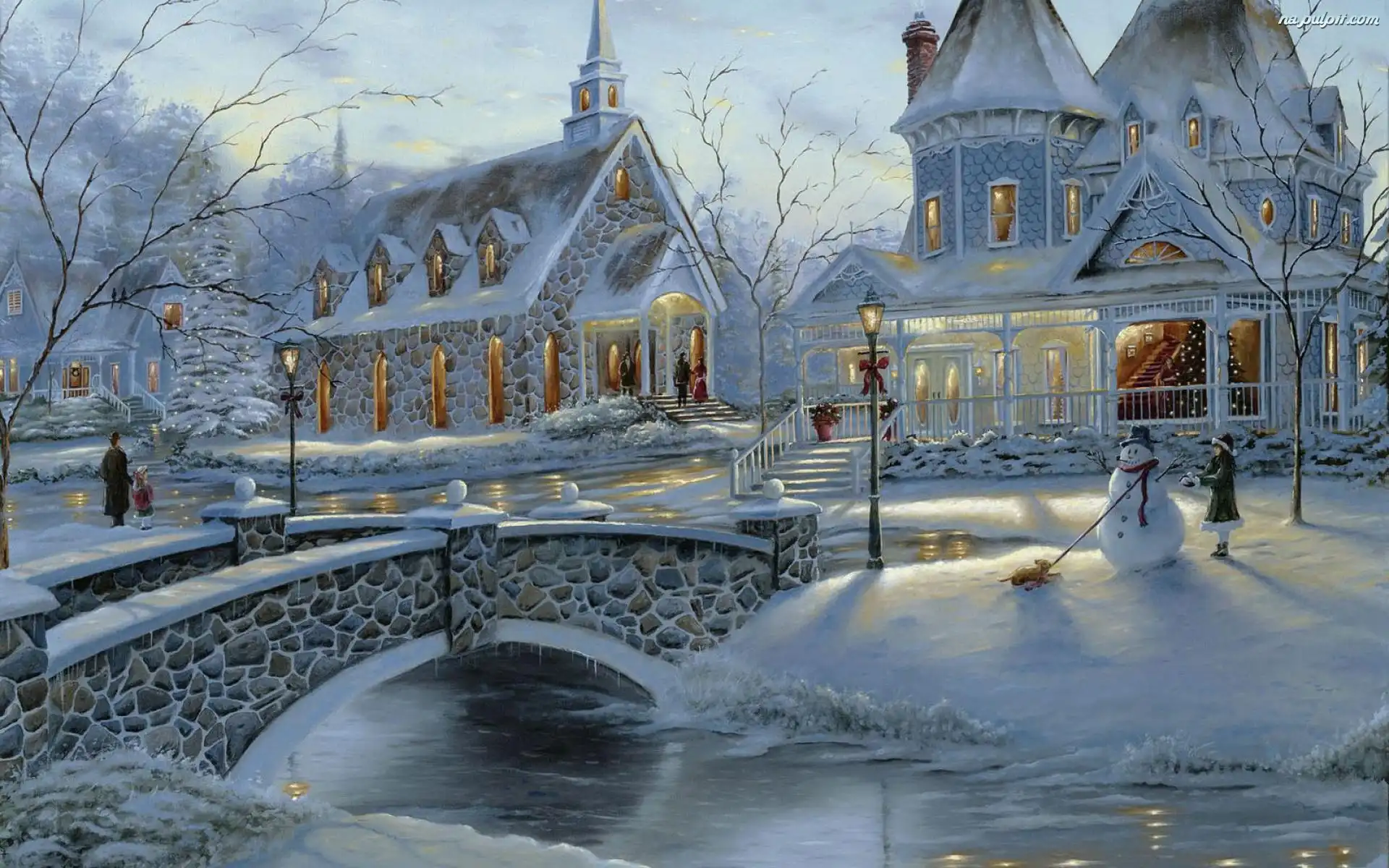 Malarstwo, Widoczek, Zimowy, Most Na Pulpit