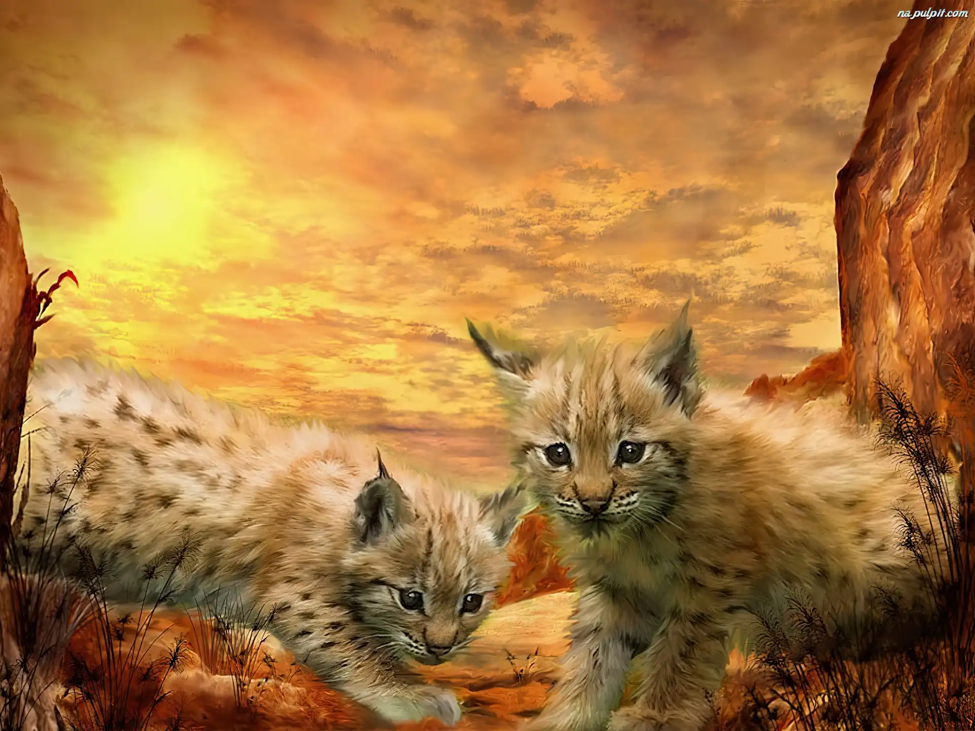 Małe, Słońca, Art, Rysie, Dwa, Zachód Na Pulpit