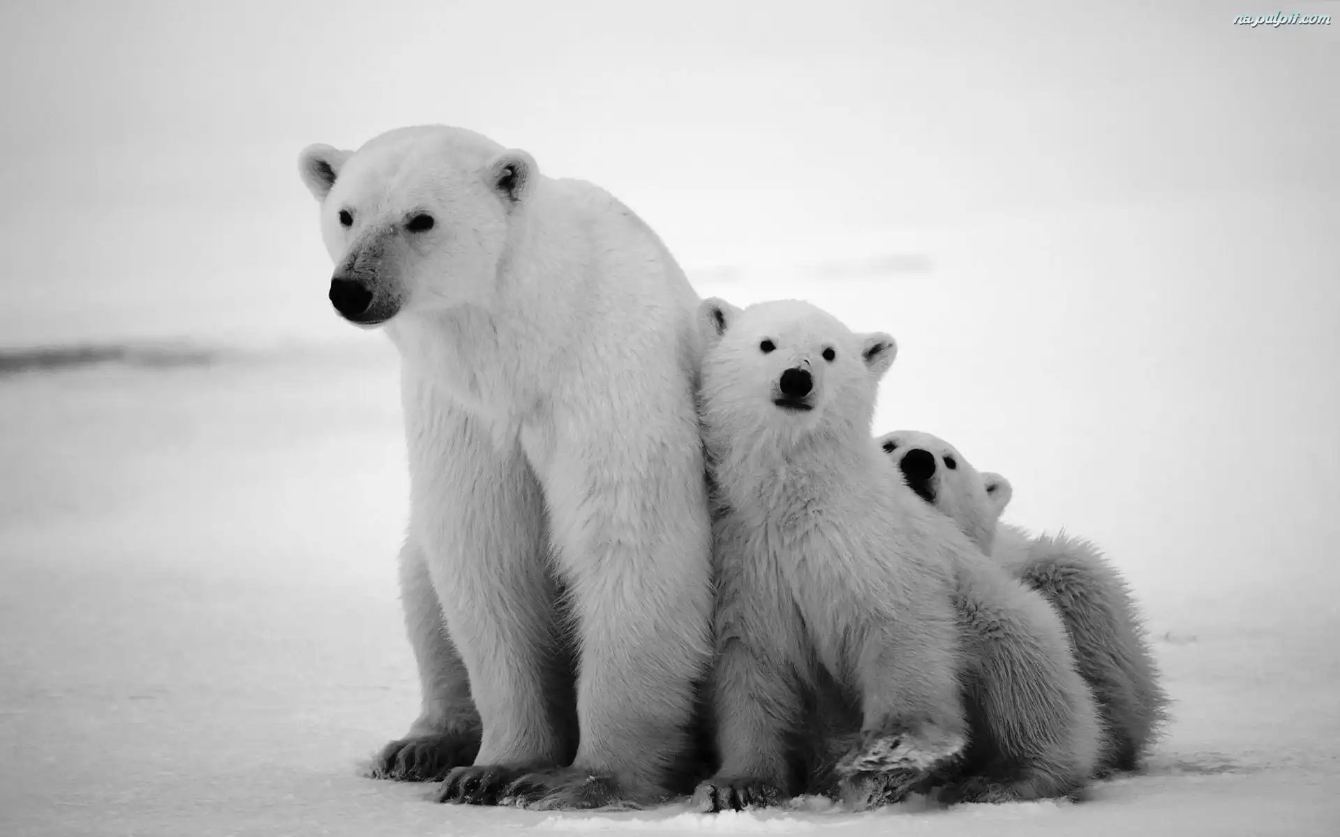 Małe, Mama, Polarne, Niedzwiedzie, Dwa Na Pulpit