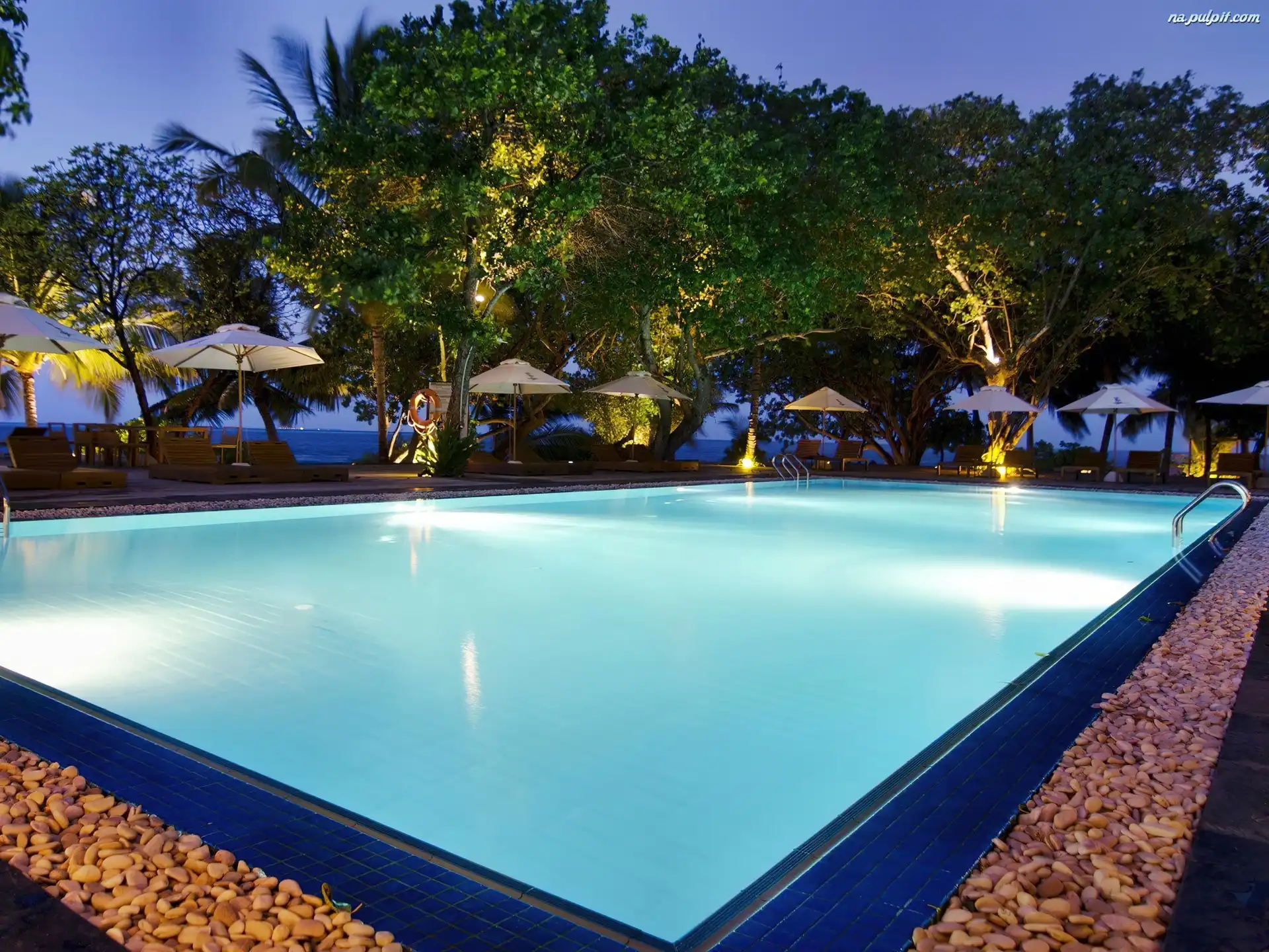 Malediwy, Drzewa, Basen, Hotel, Morze Na Pulpit