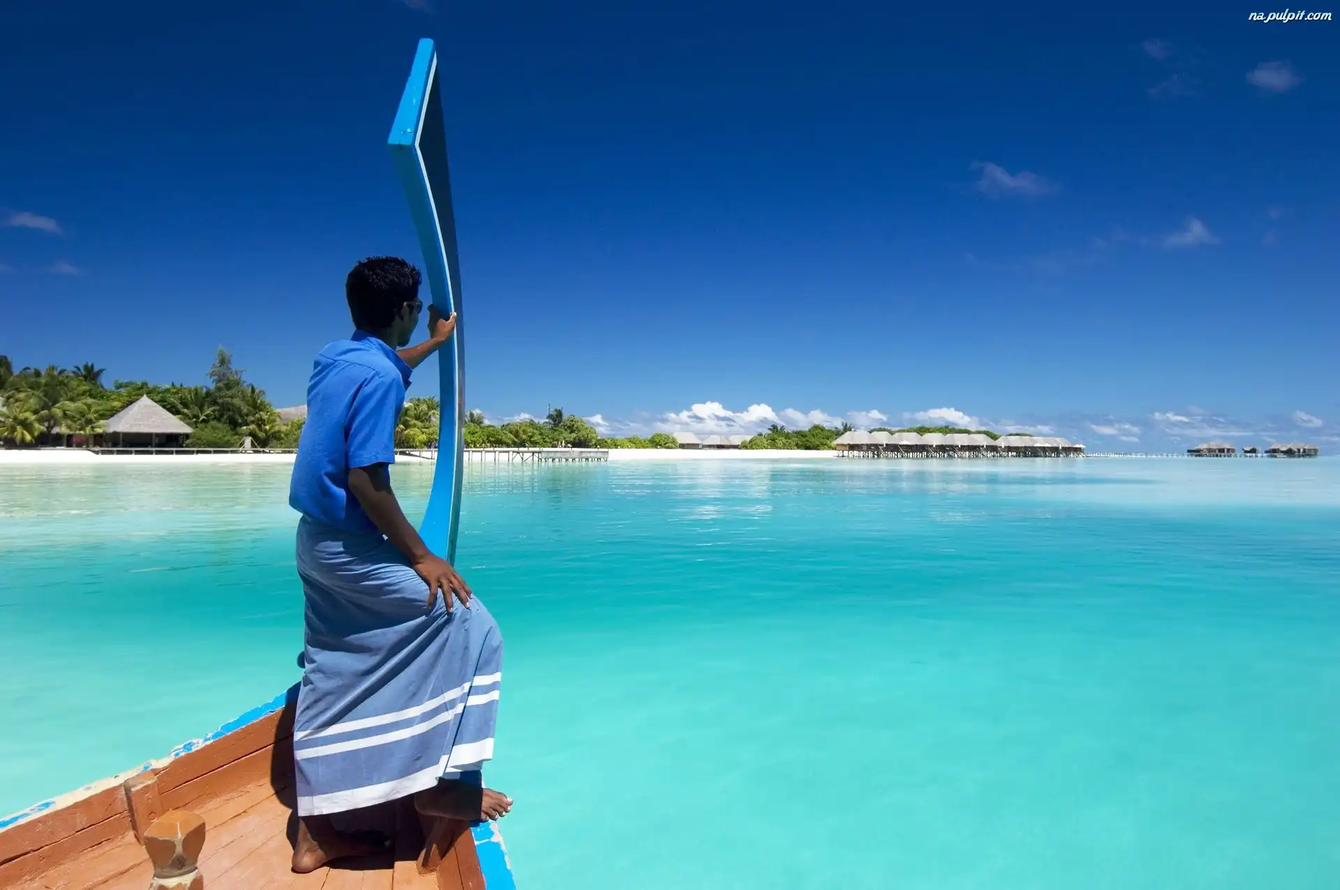 Malediwy, Łódka, Mężczyzna, Morze Na Pulpit