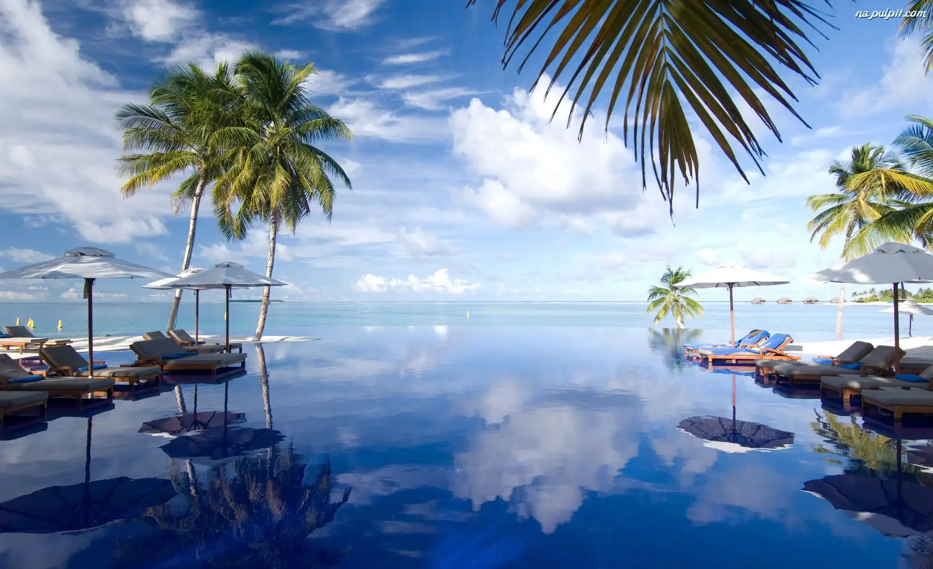 Malediwy, Parasole, Morze, Palmy Na Pulpit