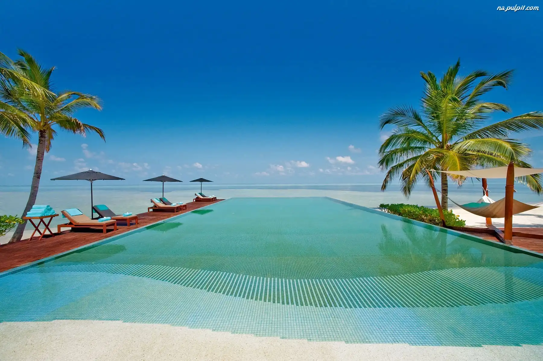 Malediwy, Plaża, Morze, Palmy Na Pulpit