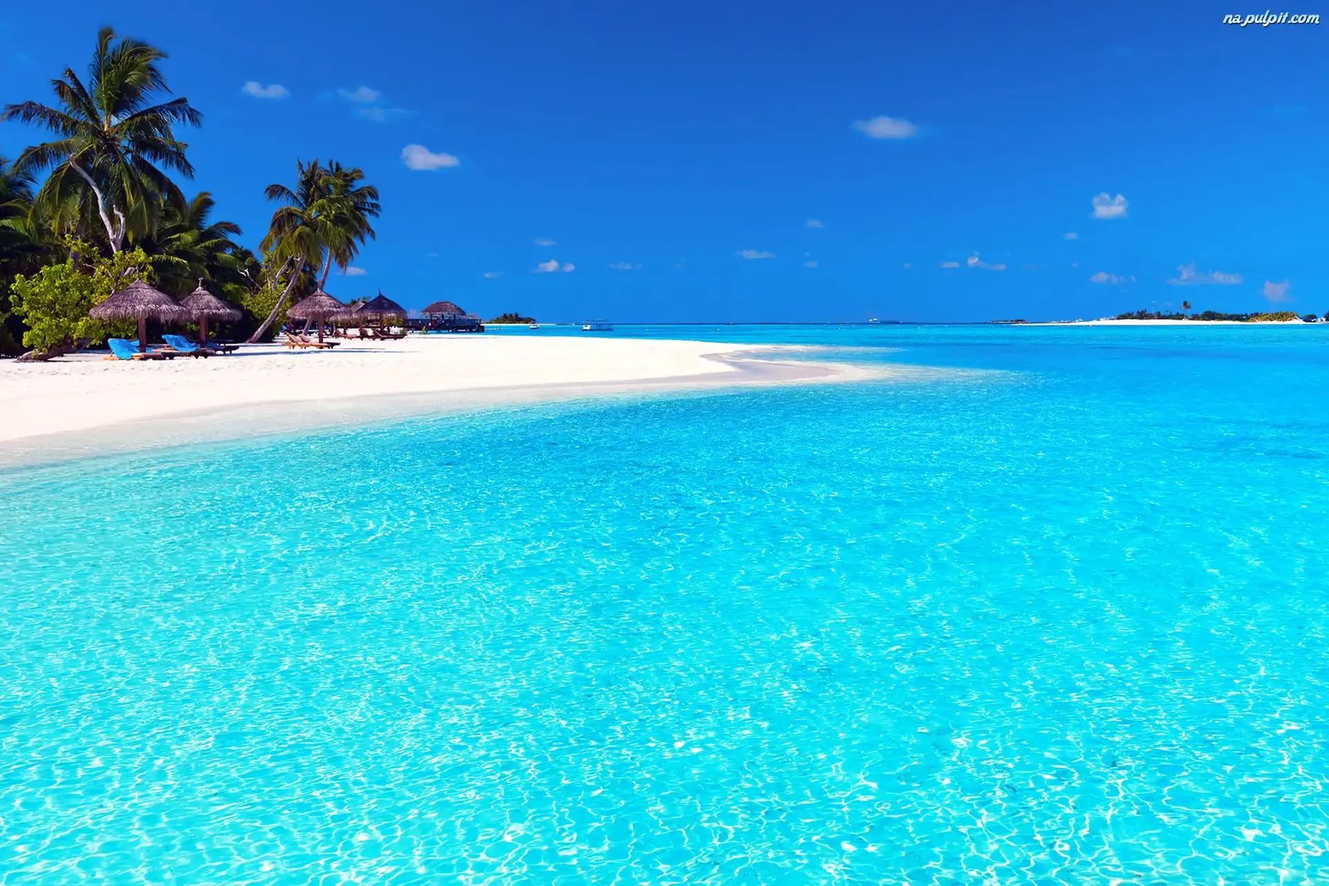 Malediwy, Plaża, Morze, Palmy Na Pulpit
