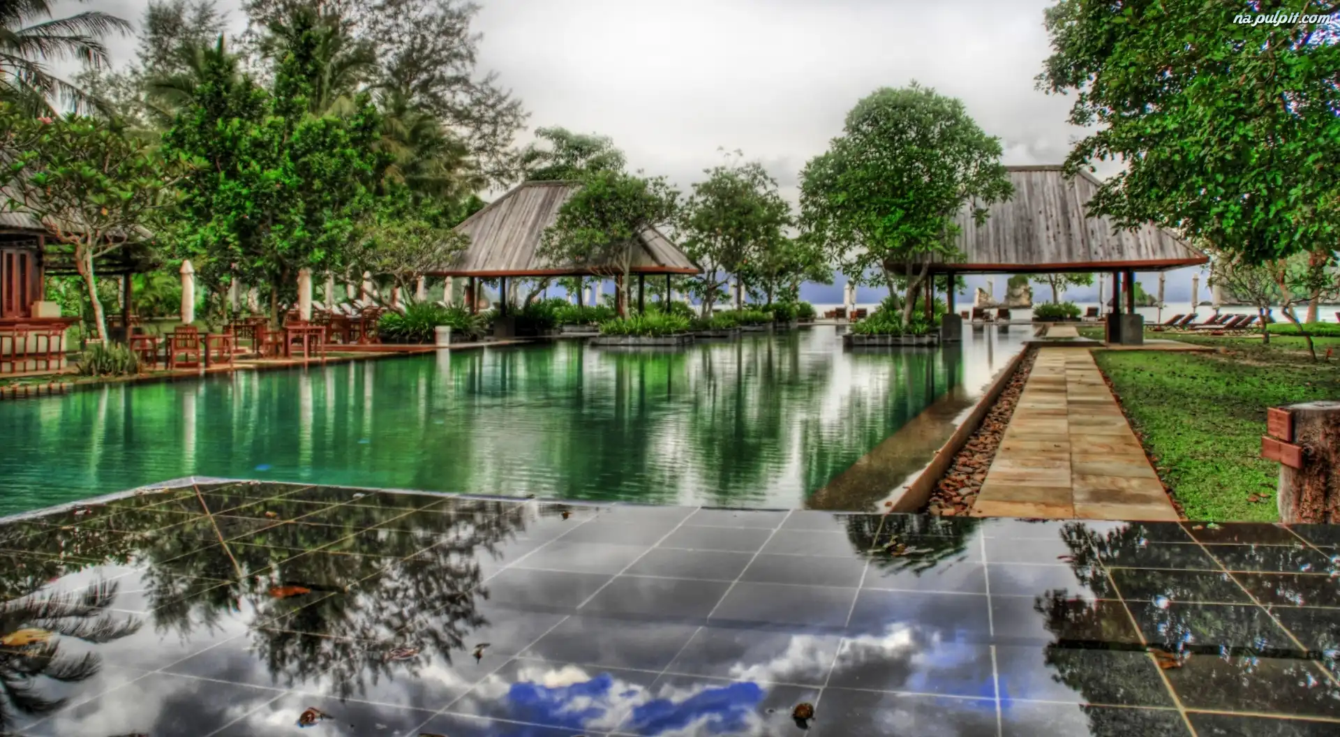 Malezja, Drzewa, Domki, Basen Na Pulpit
