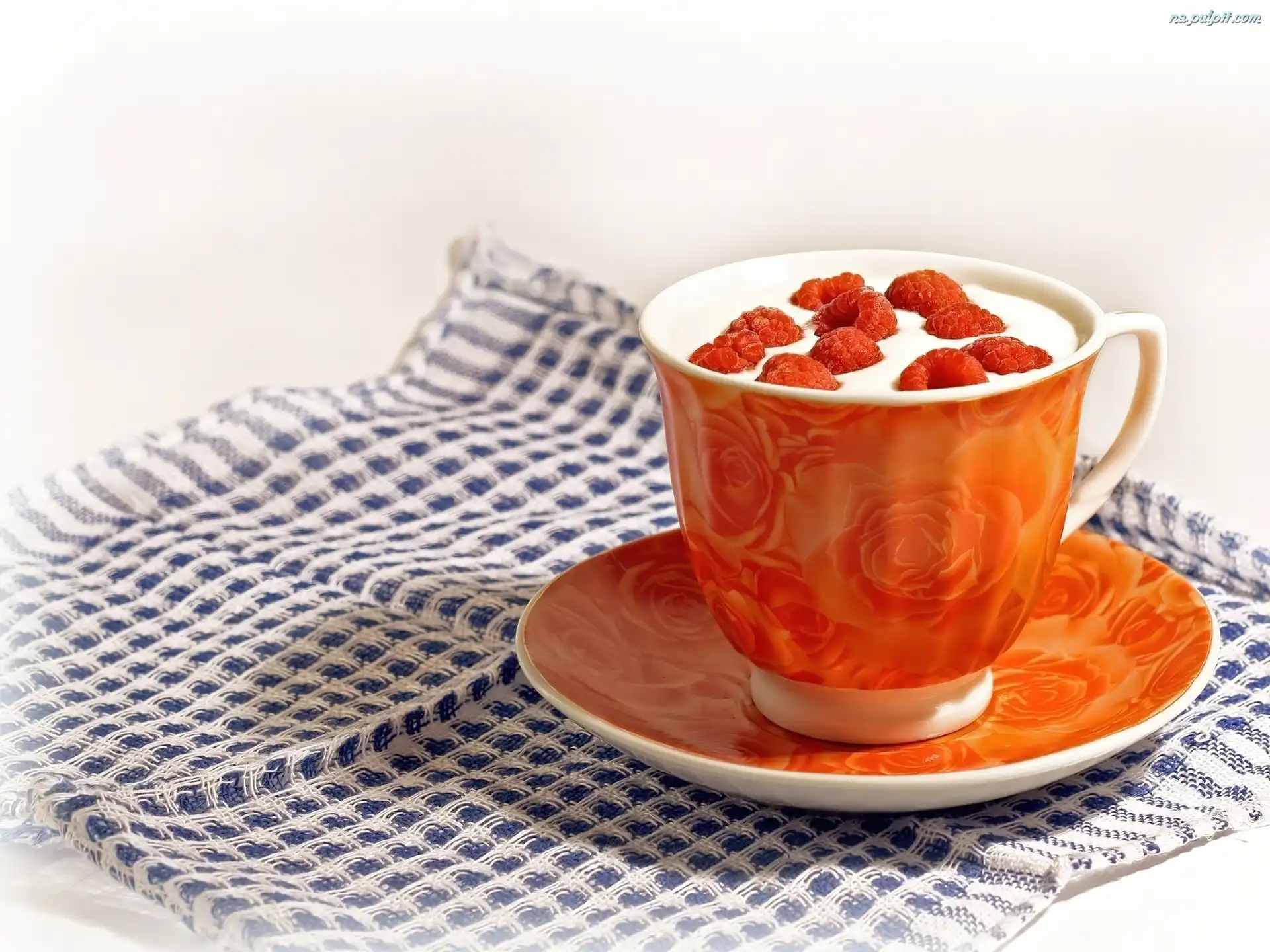 Maliny, Bita, Deser, Filiżanka, Śmietana Na Pulpit