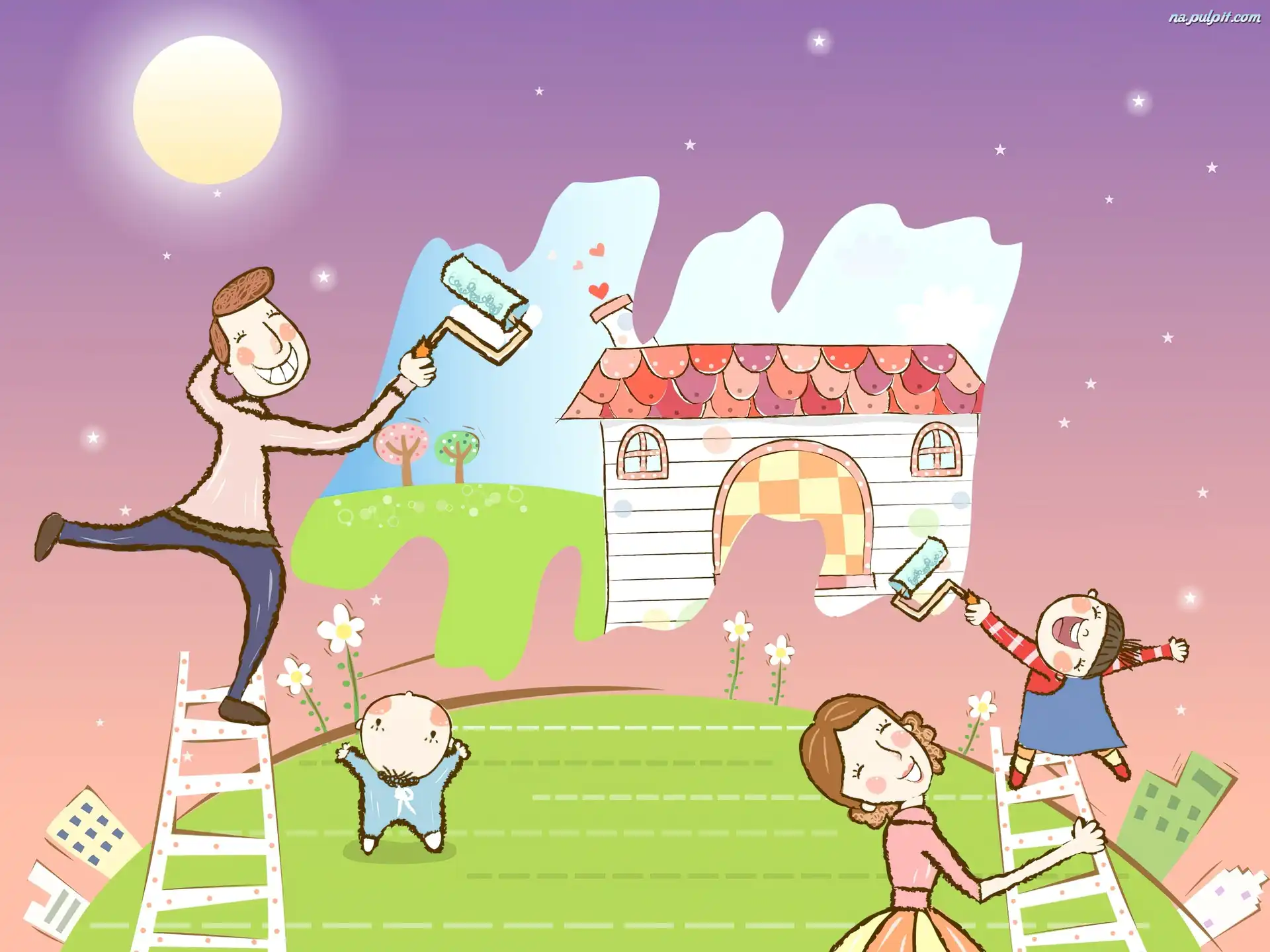 Malowanie, Rodzinka, Szczęśliwa, Wspólne Na Pulpit