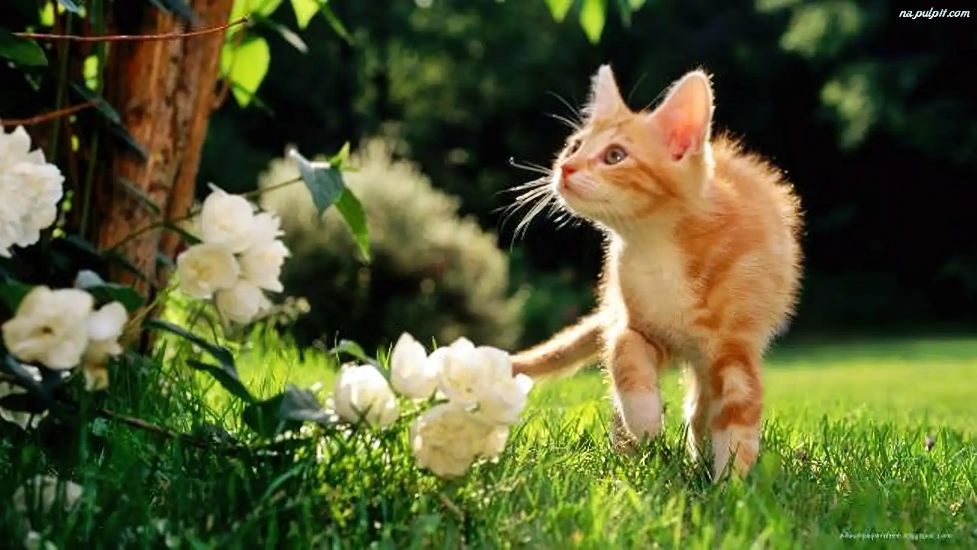 Ogród, Mały, Kotek Na Pulpit