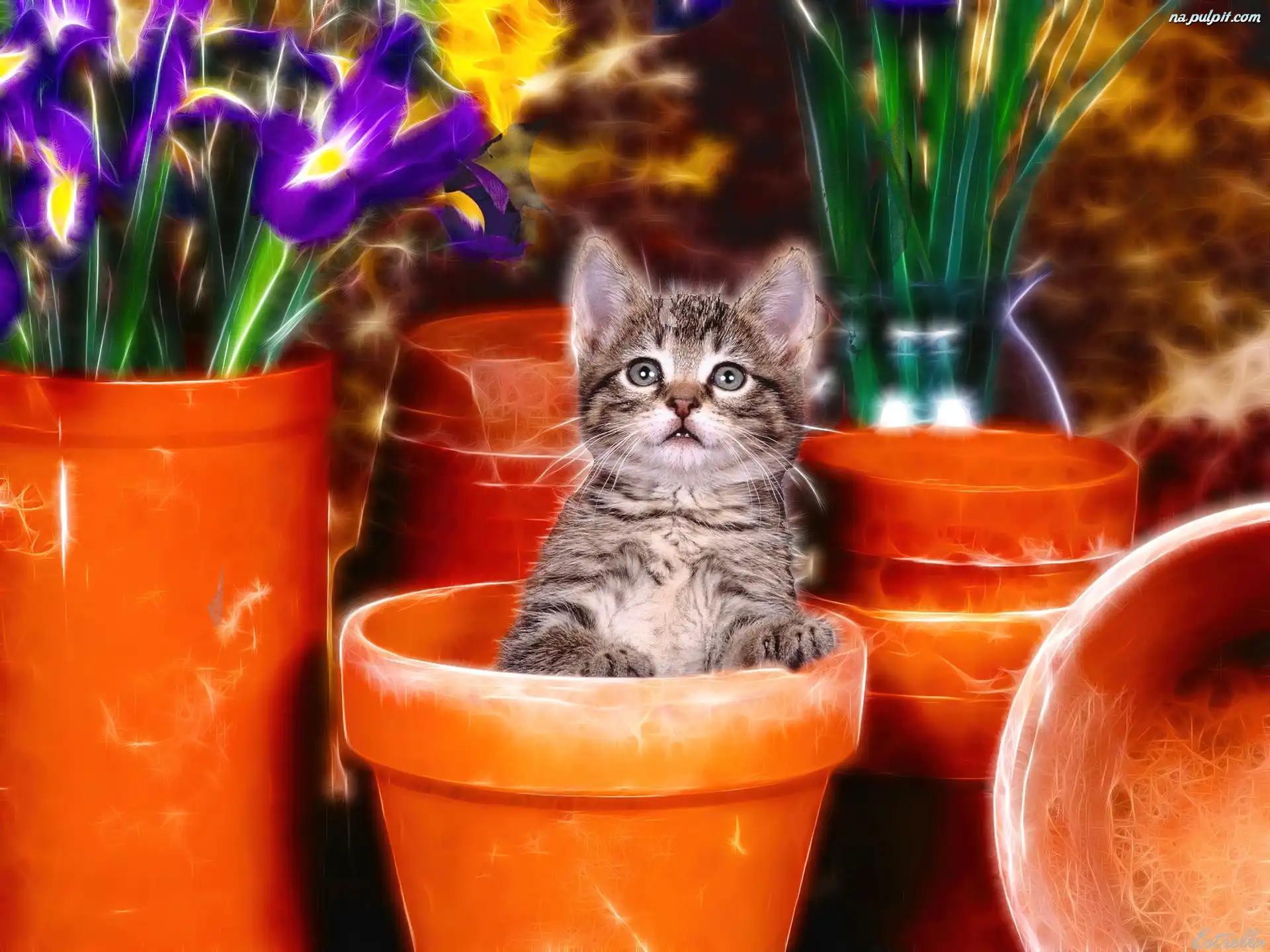 Mały, Kwiaty, Grafika, Kotek, Słodki, Doniczki Na Pulpit