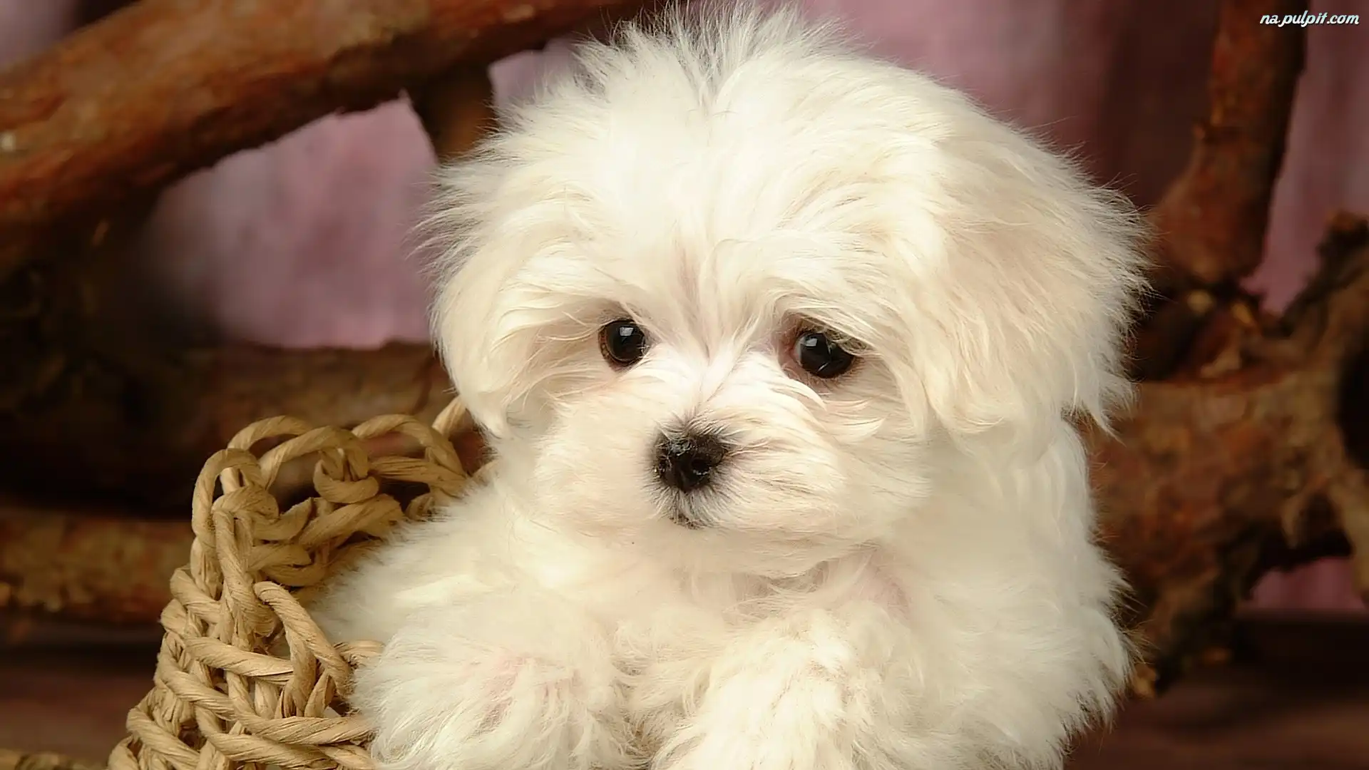 Maltańczyk, Biały, Mały, Szczeniaczek Na Pulpit