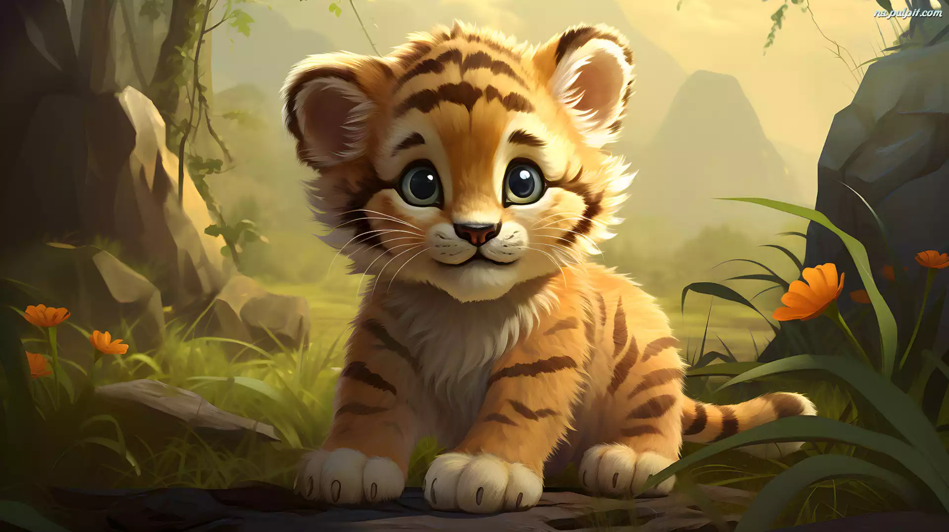 Góry, Mały, Tygrys, Grafika, Kwiaty