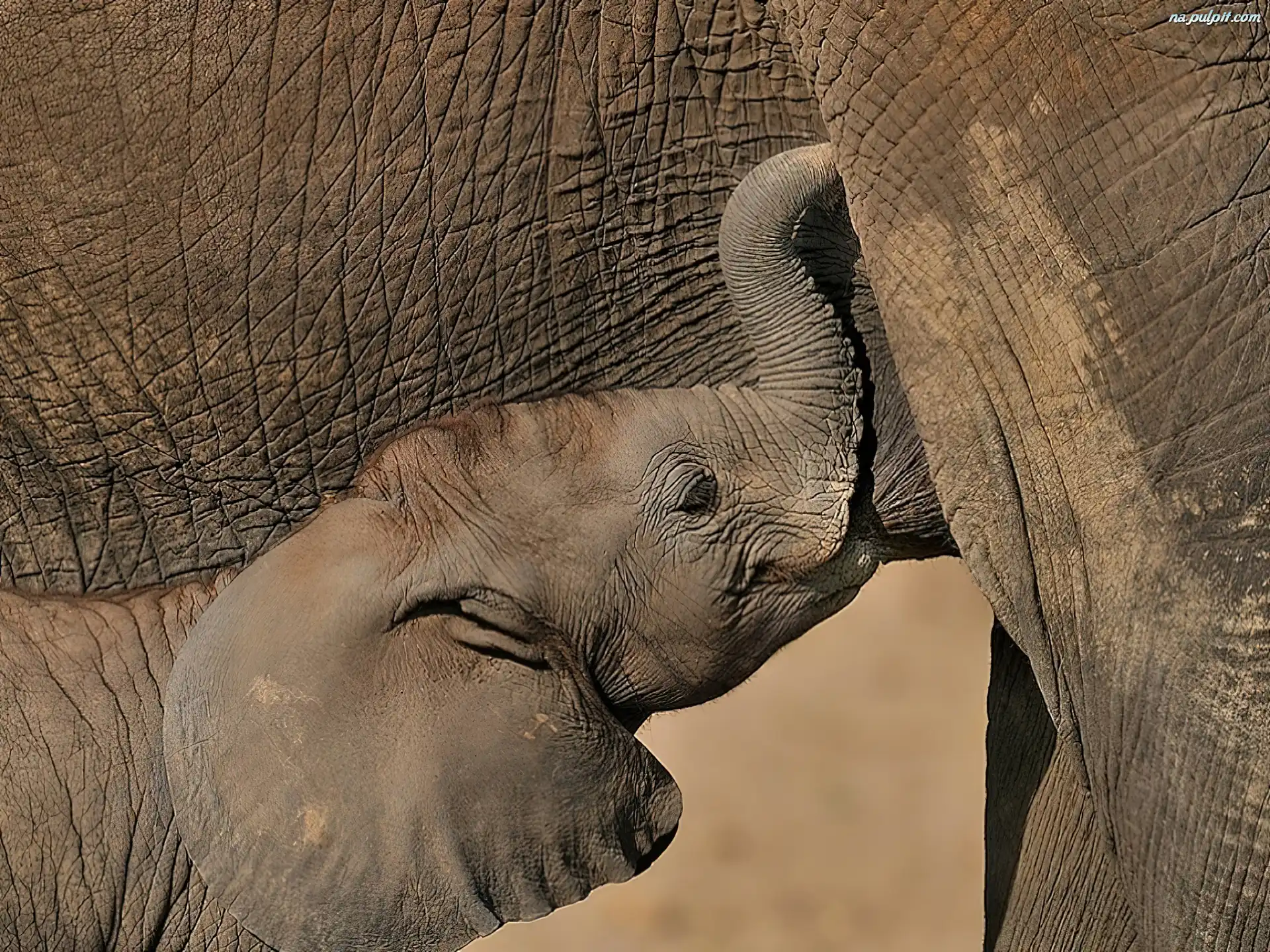 Młode, Mama, Słoń Na Pulpit