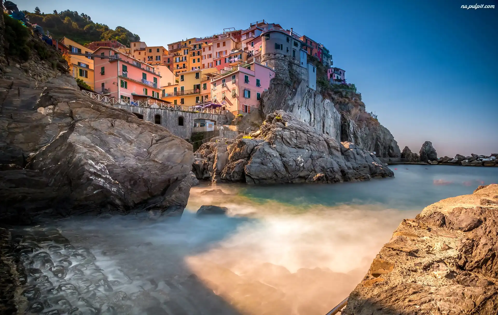 Manarola, Morze, Wybrzeże, Domy, Włochy, Skały Na Pulpit