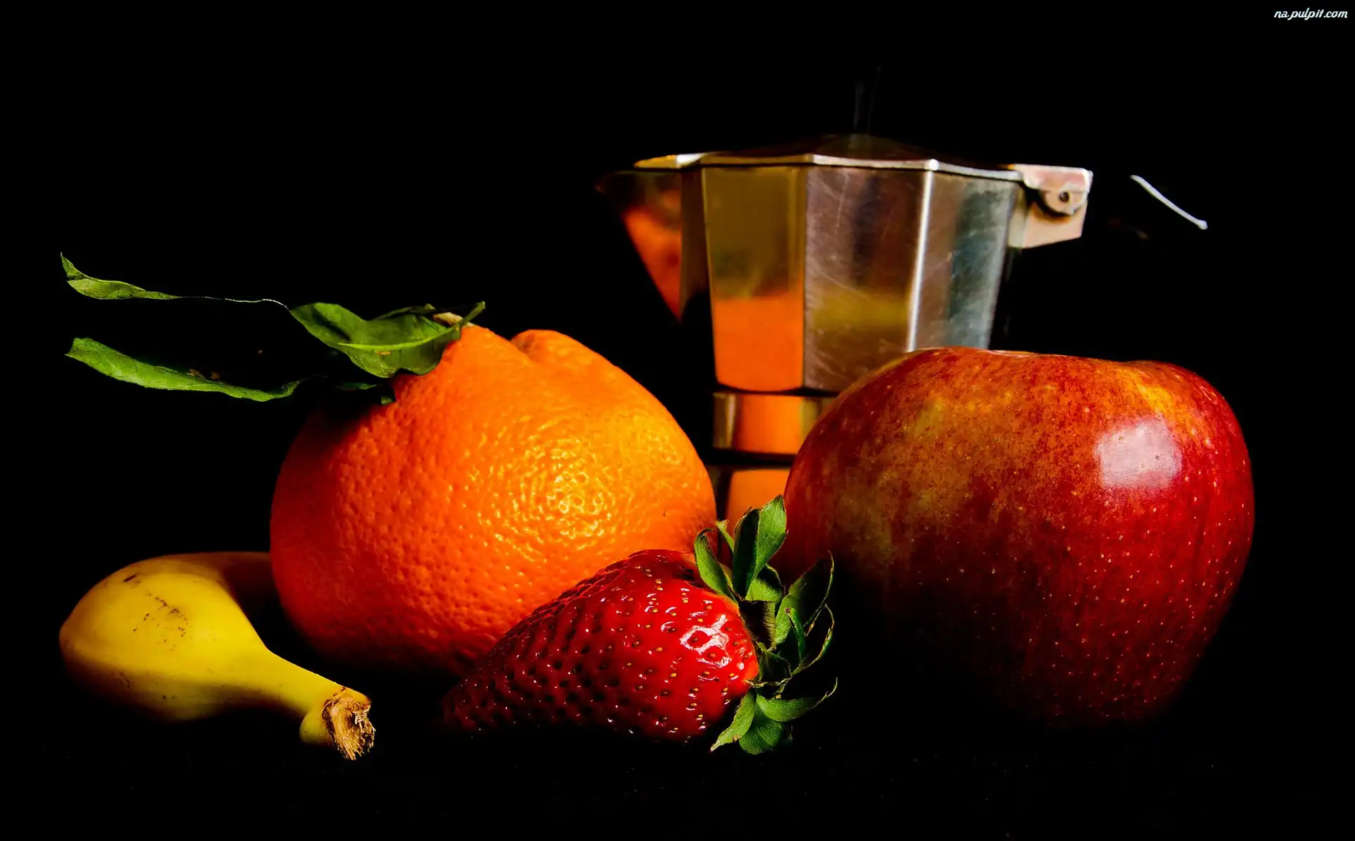 Mandarynka, Mandarynka, Jabłko, Truskawka, Banan, Jabłko, Kawiarka Na Pulpit