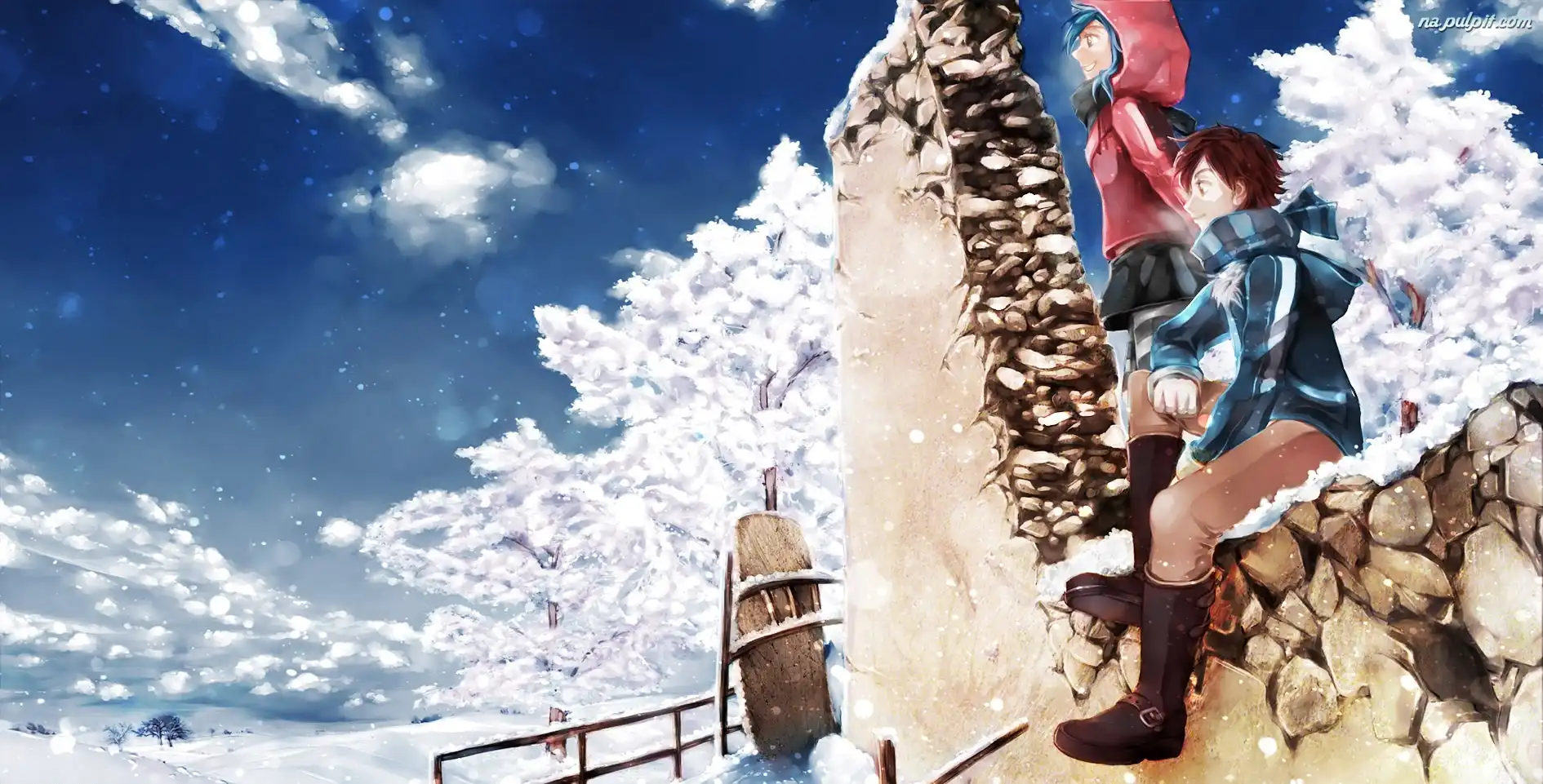 Manga Anime, Chłopak, Dziewczyna, Śnieg Na Pulpit
