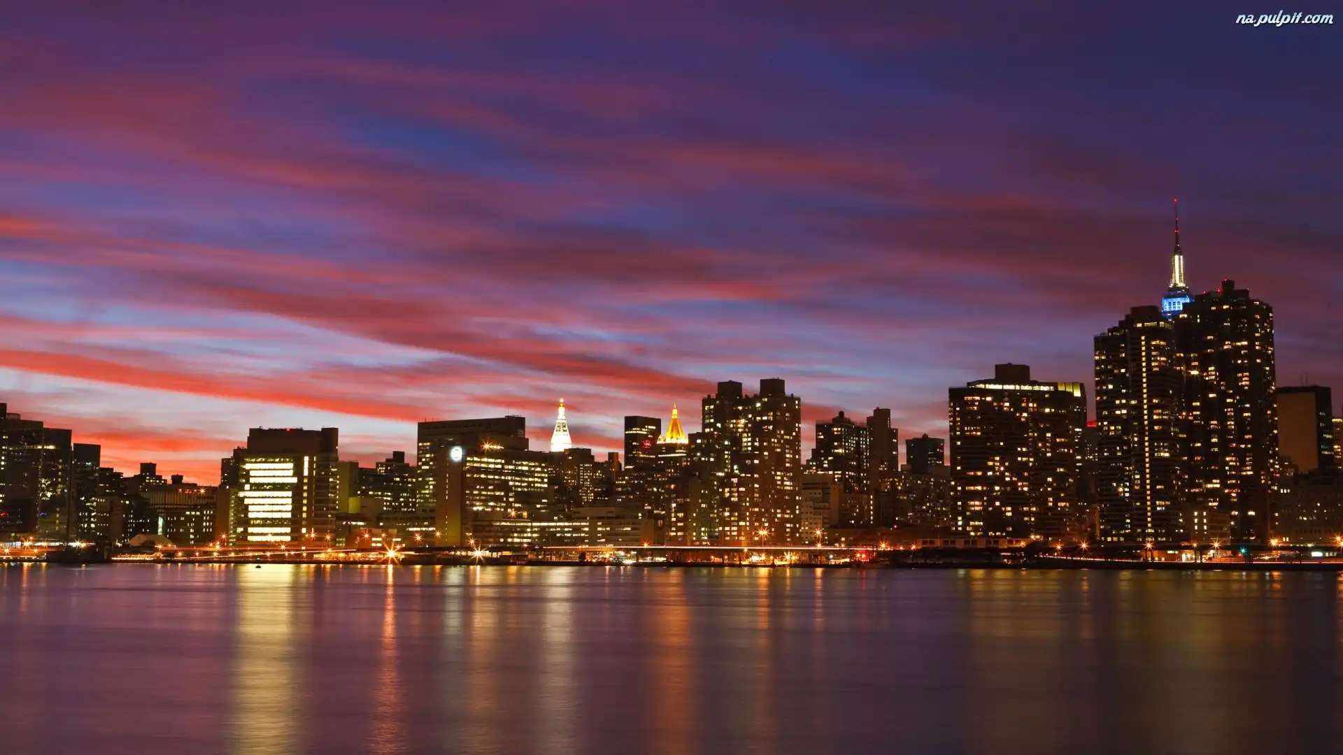 Noc, Manhattan, Oświetlony Na Pulpit