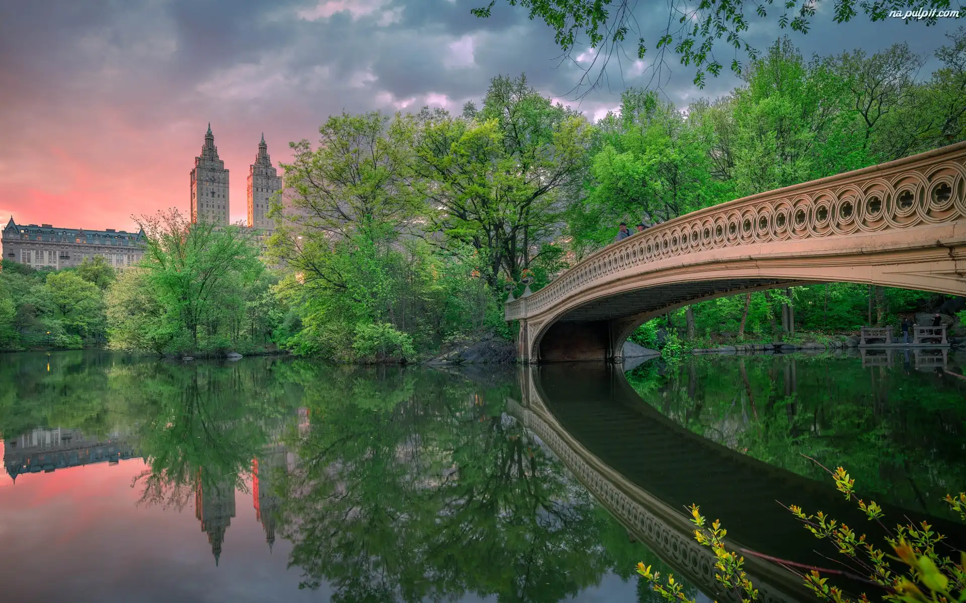 Chmury, Stany Zjednoczone, Manhattan, Budynek Eldorado, Drzewa, Central Park, Nowy Jork, Most, Jezioro Na Pulpit |
