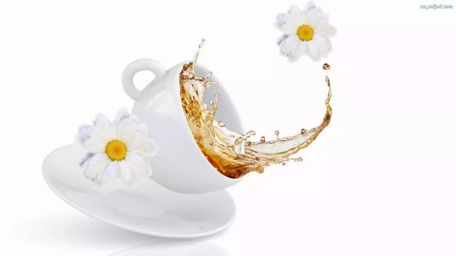 Margaretki, Filiżanka, Herbata, Napoj, Spodek Na Pulpit