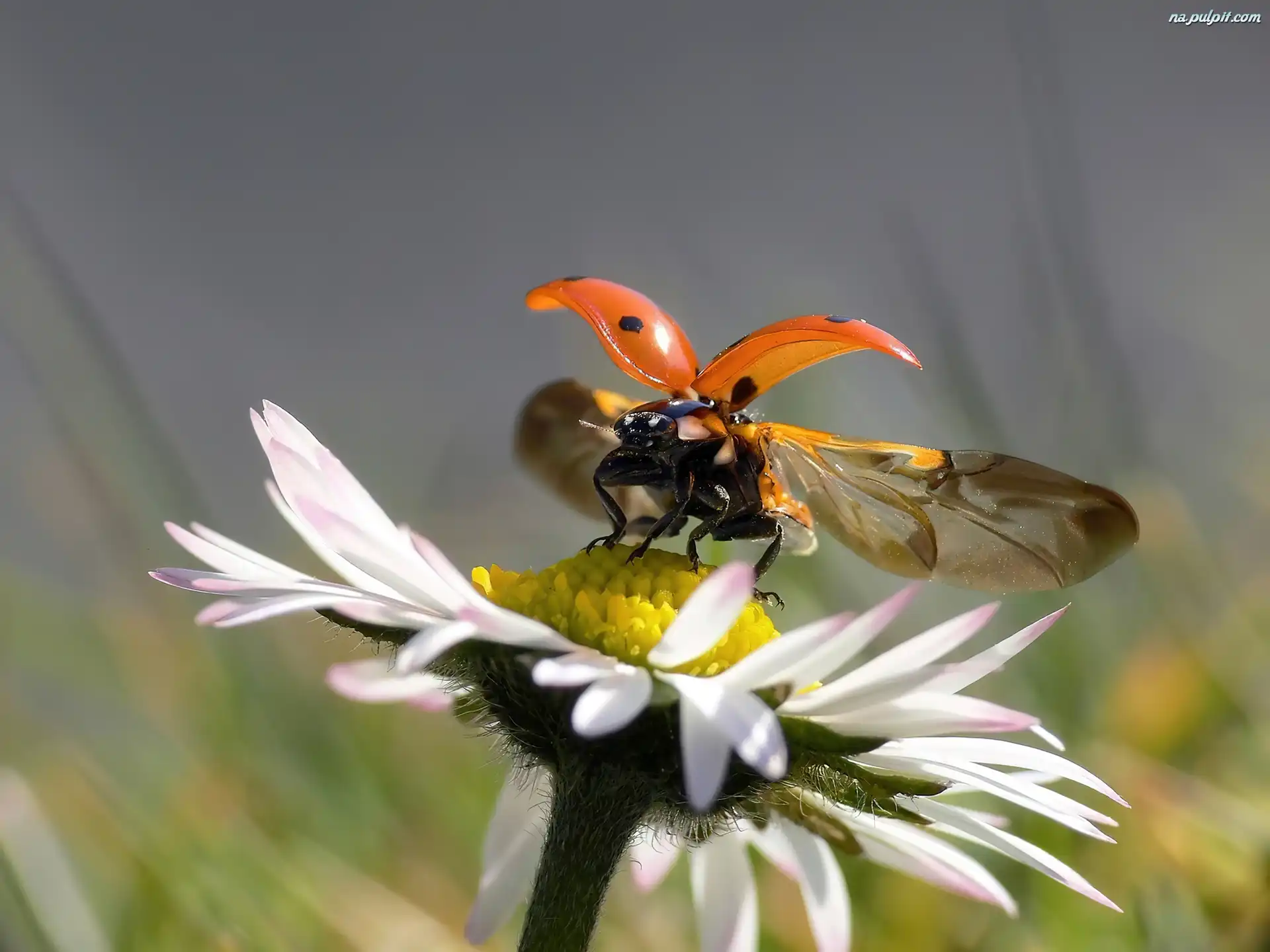 Margerytka, Skrzydełka, Rozłożone, Biedronka, Kwiat