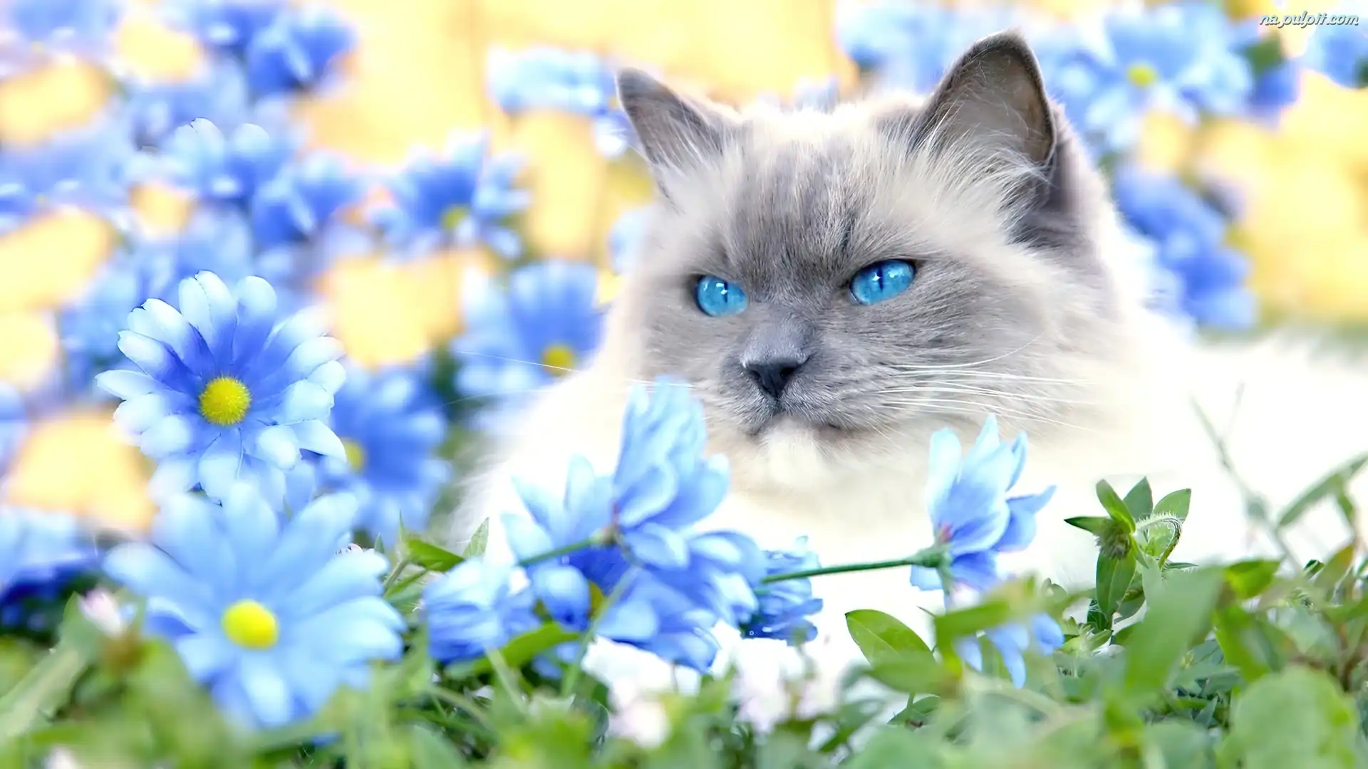 Margerytki, Niebieskie, Kot, Oczy Na Pulpit