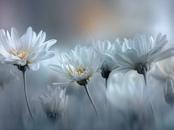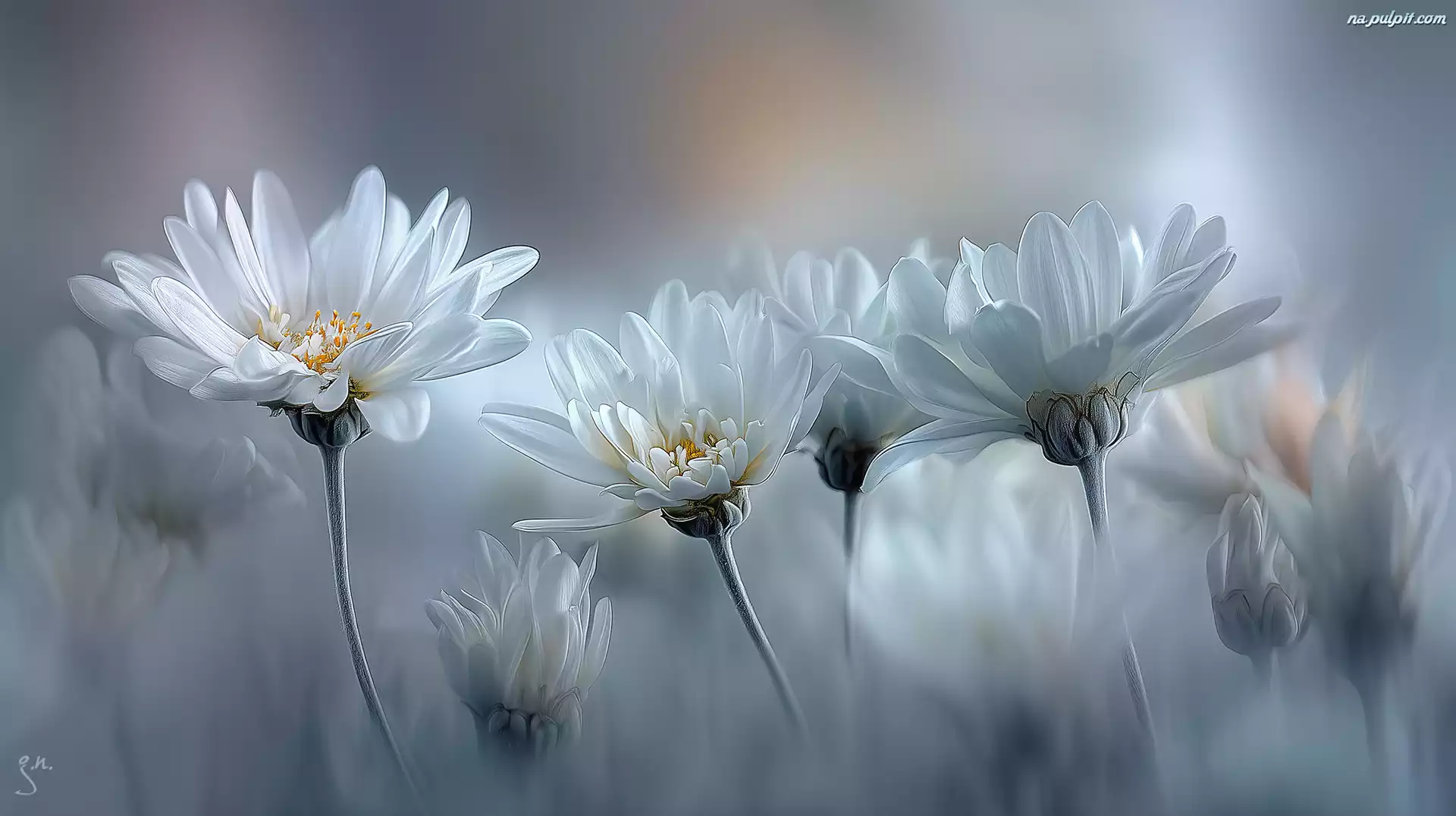Białe, Margerytki, Kwiaty, Grafika AI Na Pulpit