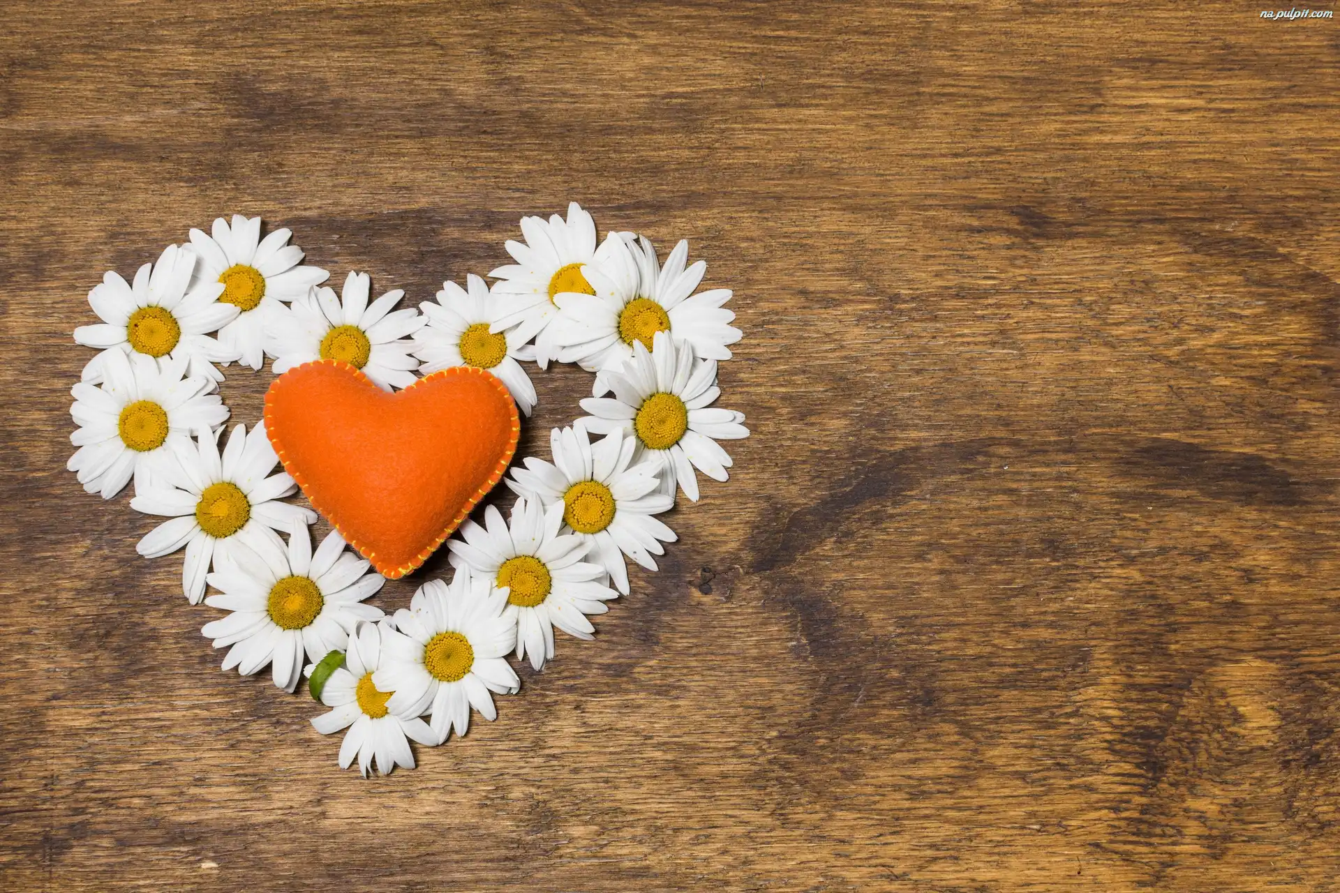 Margerytki, Poduszeczka, Deska, Pomarańczowe, Kwiaty, Serce Na Pulpit