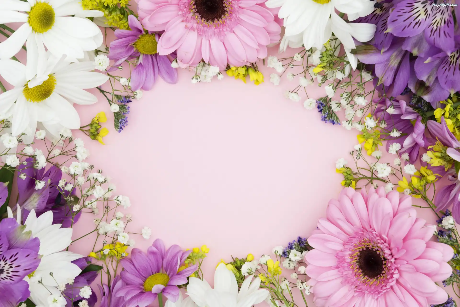Margerytki, Różowe, Tło, Gerbery, Kwiaty, Alstremeria Na Pulpit