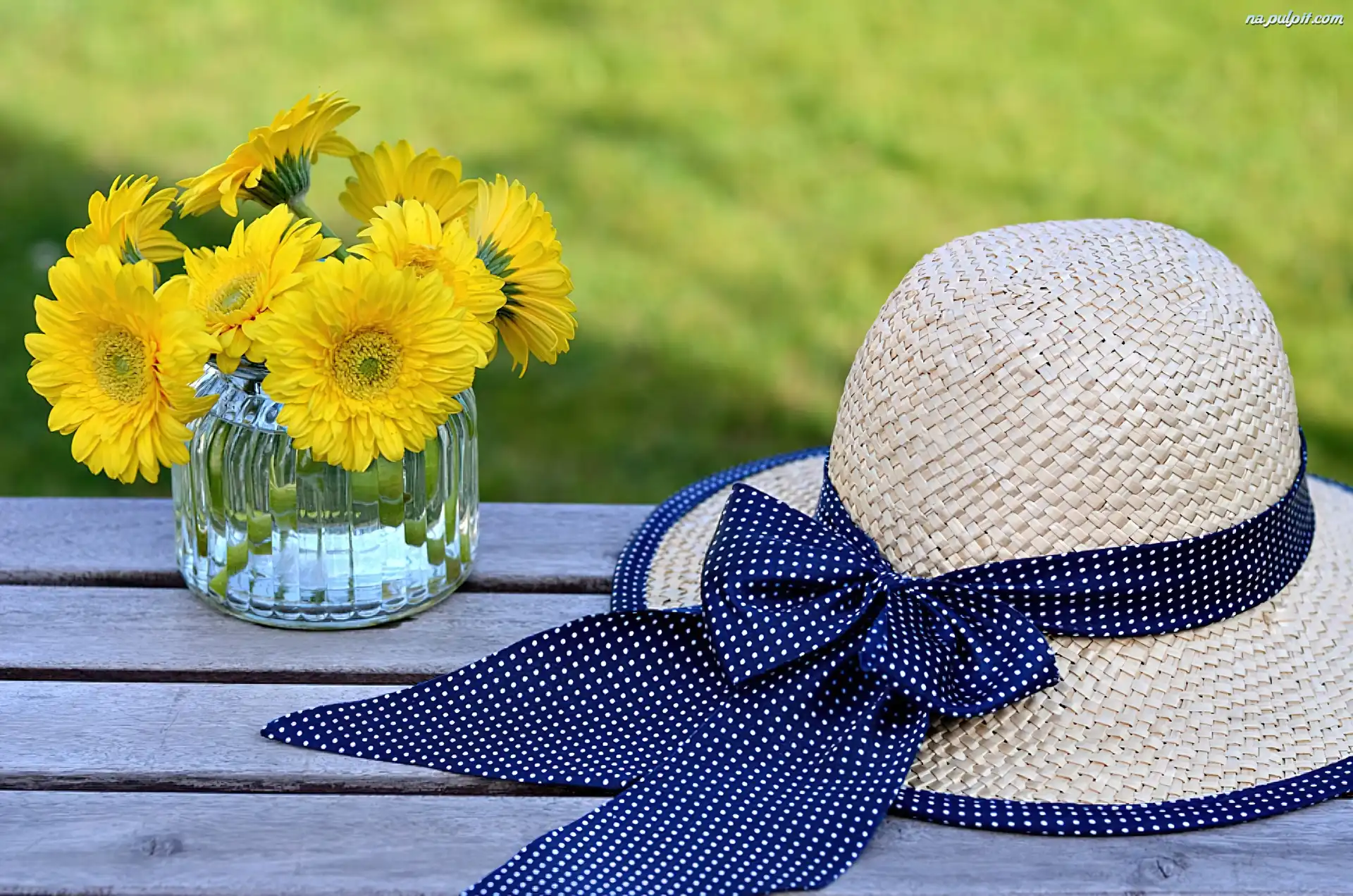 Margerytki, Kapelusz, Kokarda, Letni, Żółte, Damski