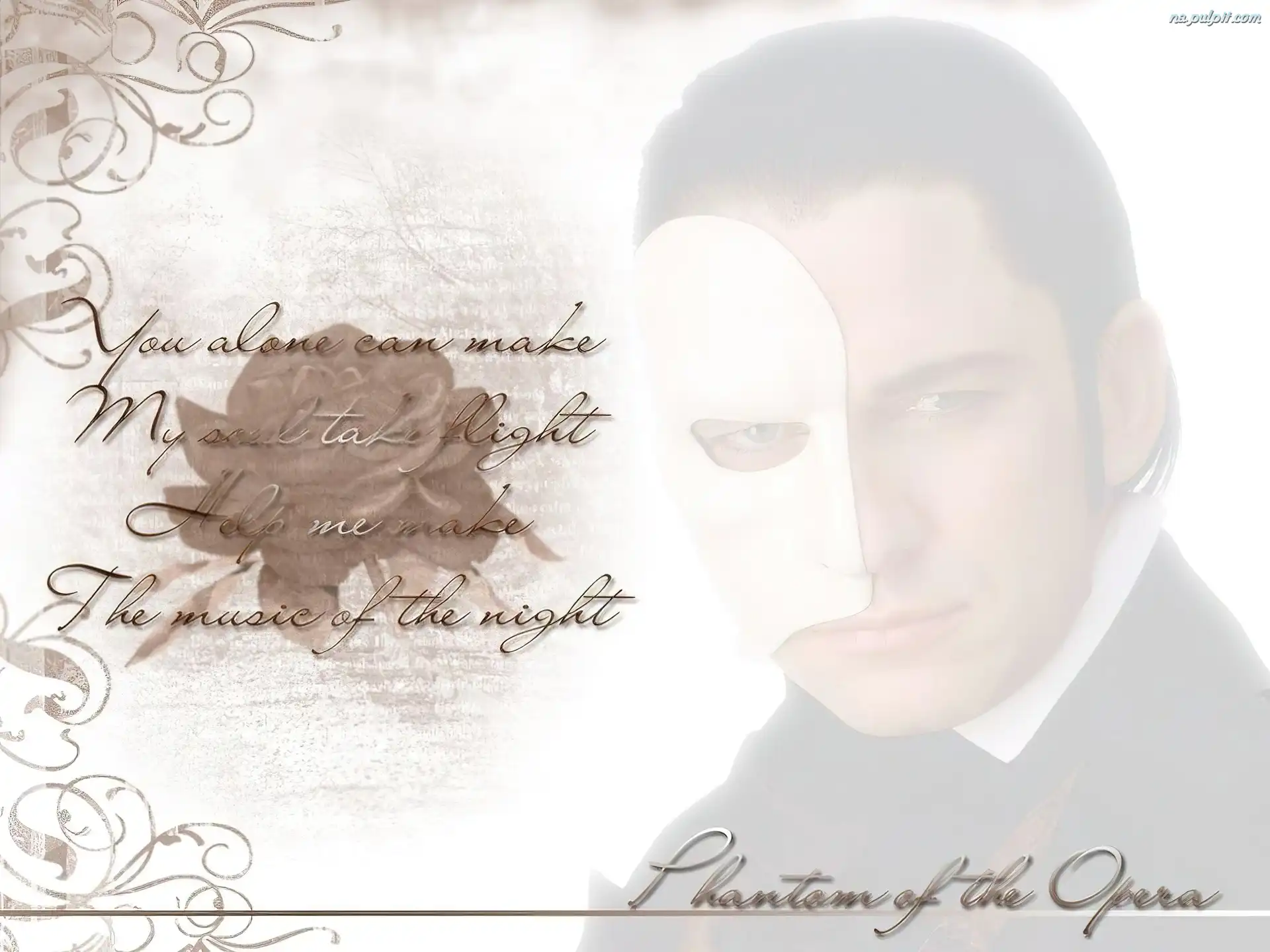 napis, biała, Gerard Butler, Phantom Of The Opera, maska Na Pulpit
