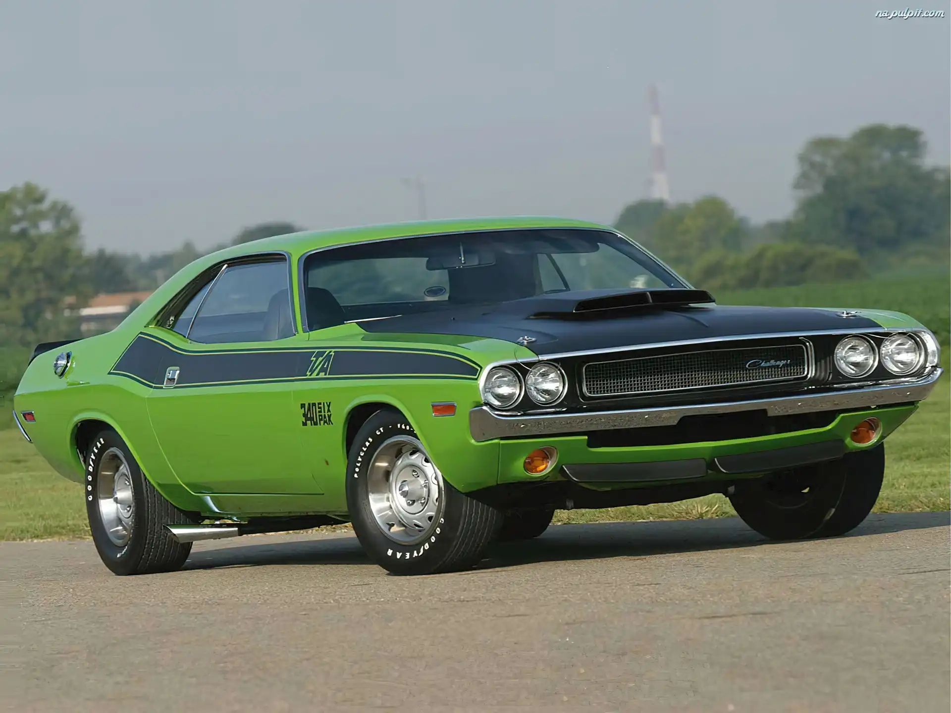 Maska, Dodge Challenger, Zielony, Wlot Na Pulpit